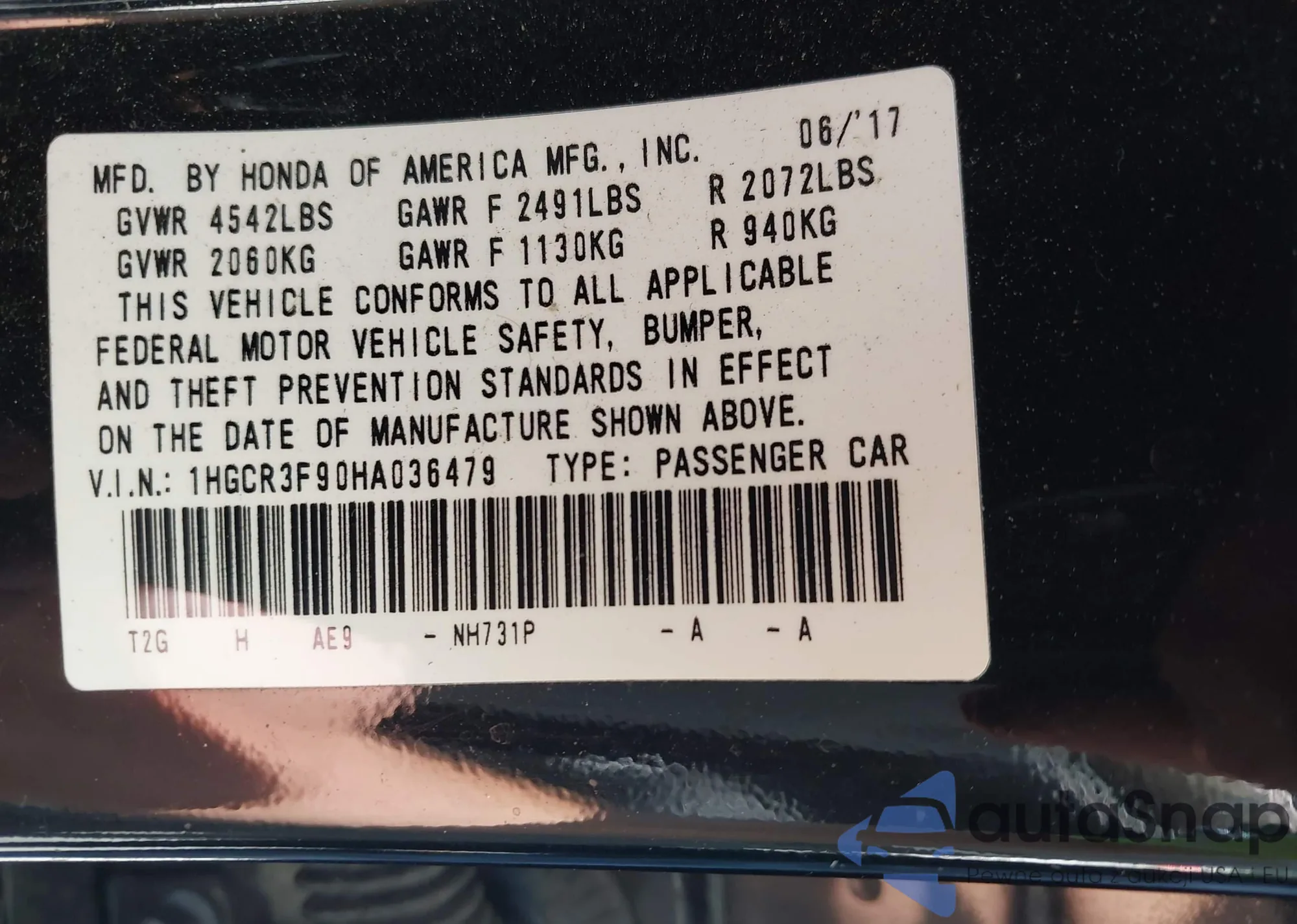 VIN: 1HGCR3F90HA036479