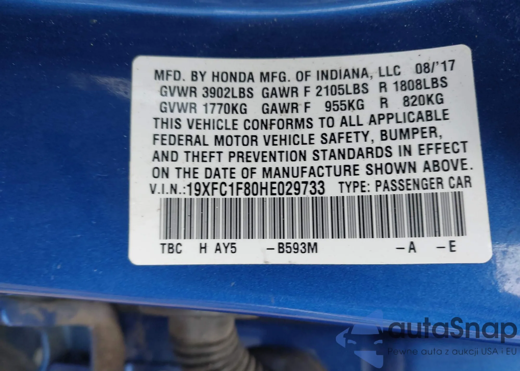 VIN: 19XFC1F80HE029733