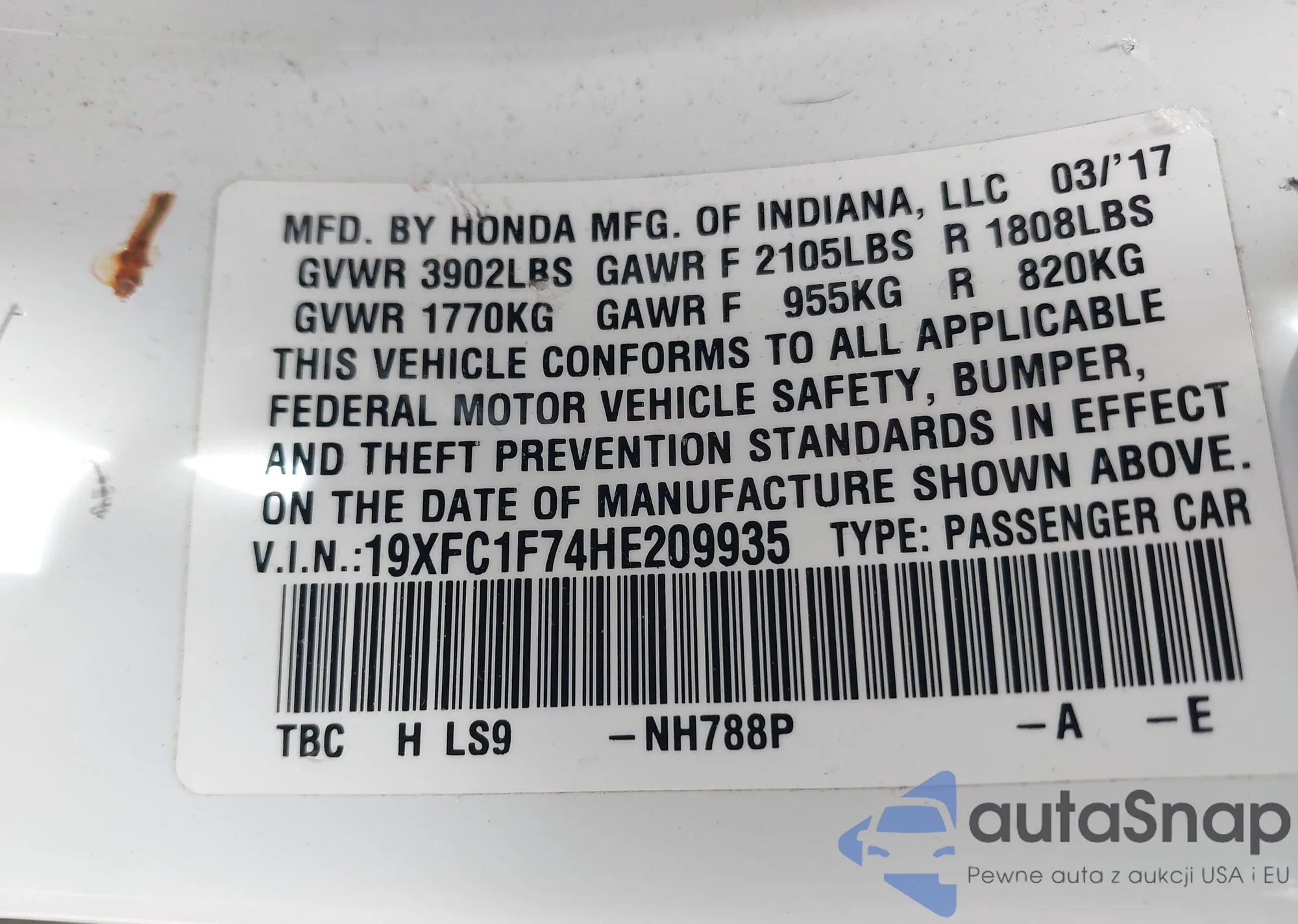 VIN: 19XFC1F74HE209935