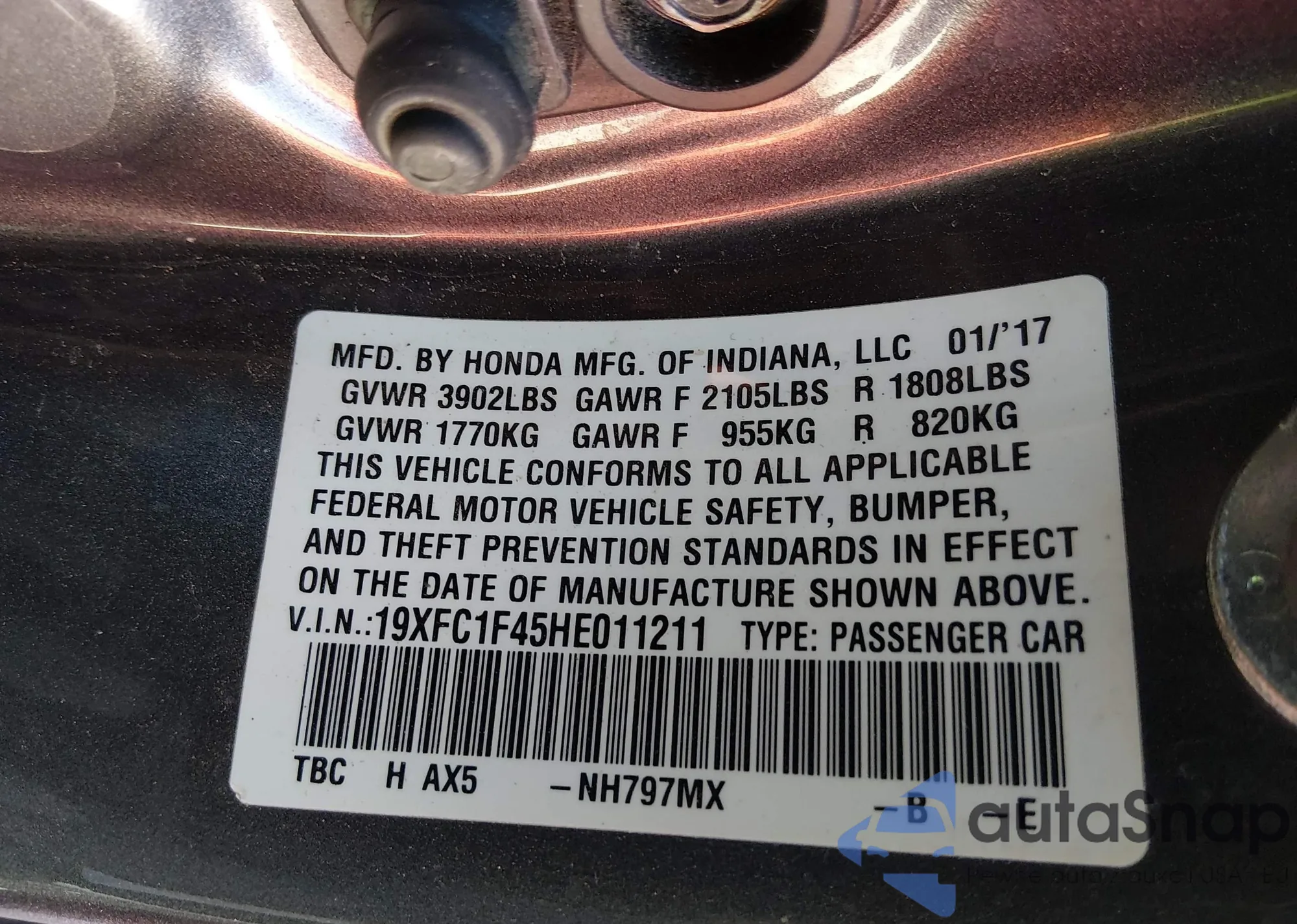 Samochód Honda Civic 2017 (VIN 19XFC1F45HE011211) był już licytowany 1 razy i/lub sprzedaje go niezweryfikowany sprzedawca. Zalecamy raport Carfax i potwierdzenie możliwości rejestracji pojazdu przed zakupem.