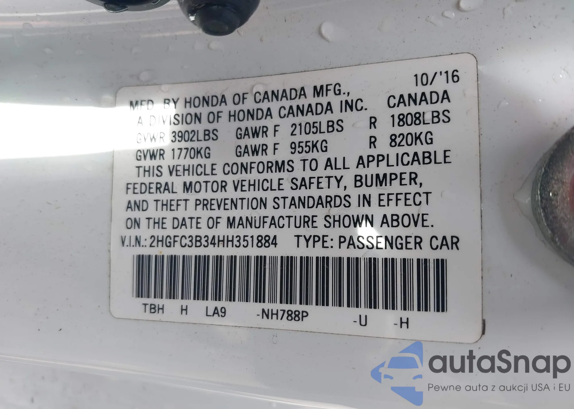 VIN: 2HGFC3B34HH351884