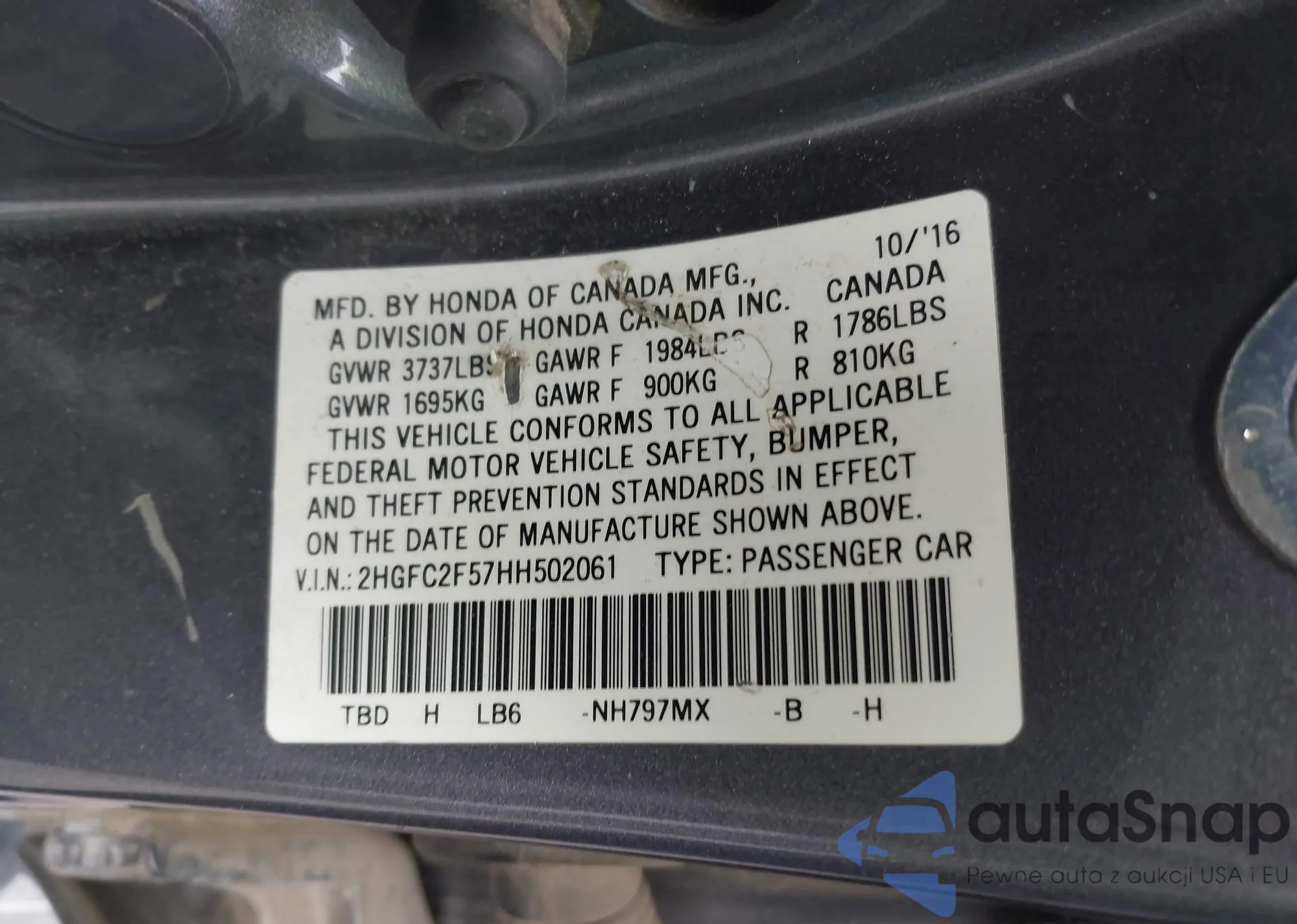 VIN: 2HGFC2F57HH502061