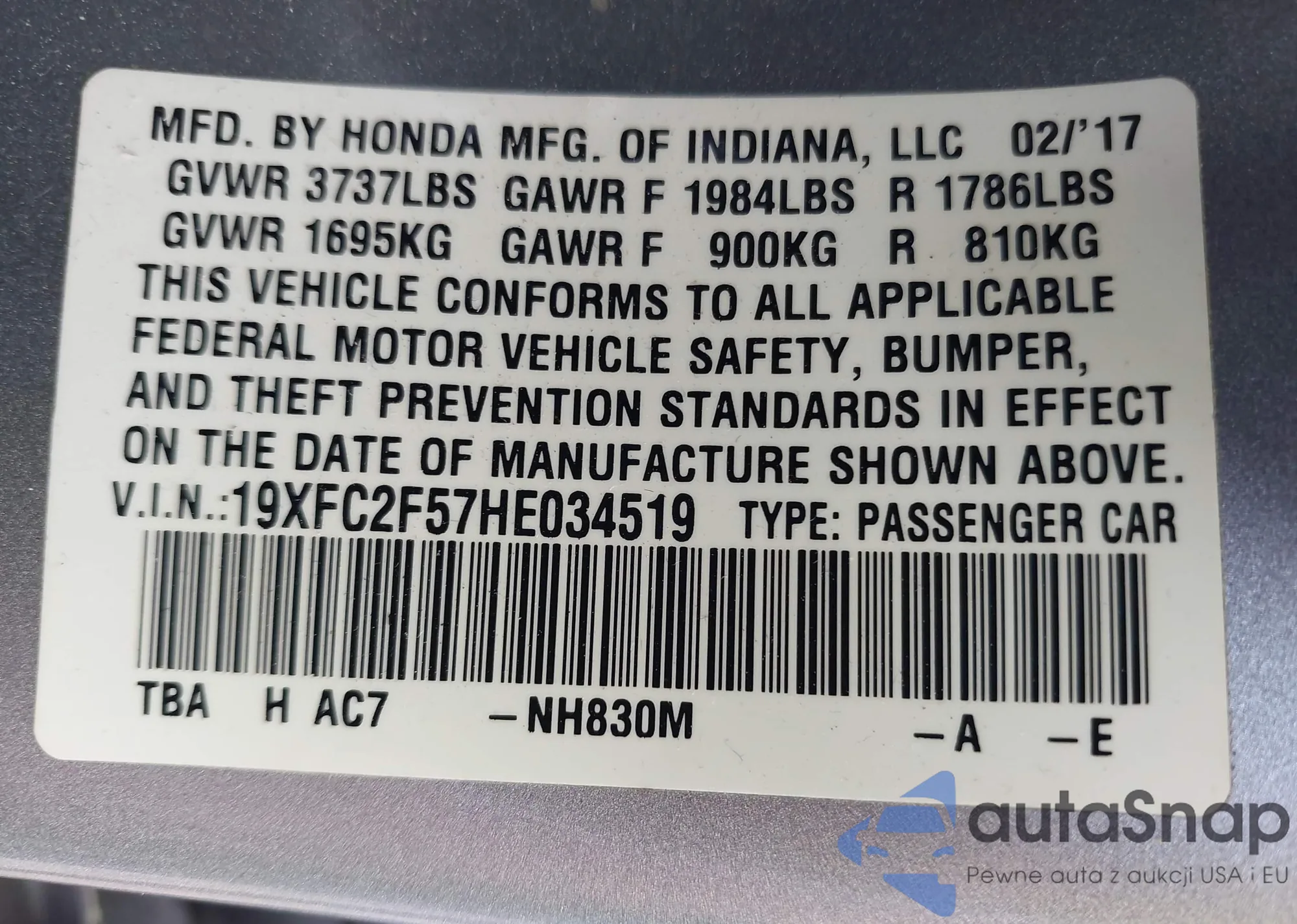 VIN: 19XFC2F57HE034519