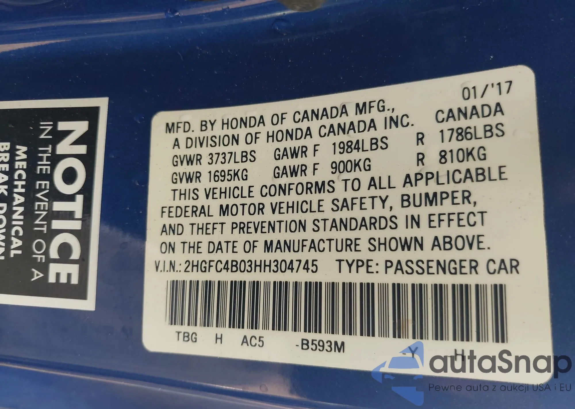 VIN: 2HGFC4B03HH304745