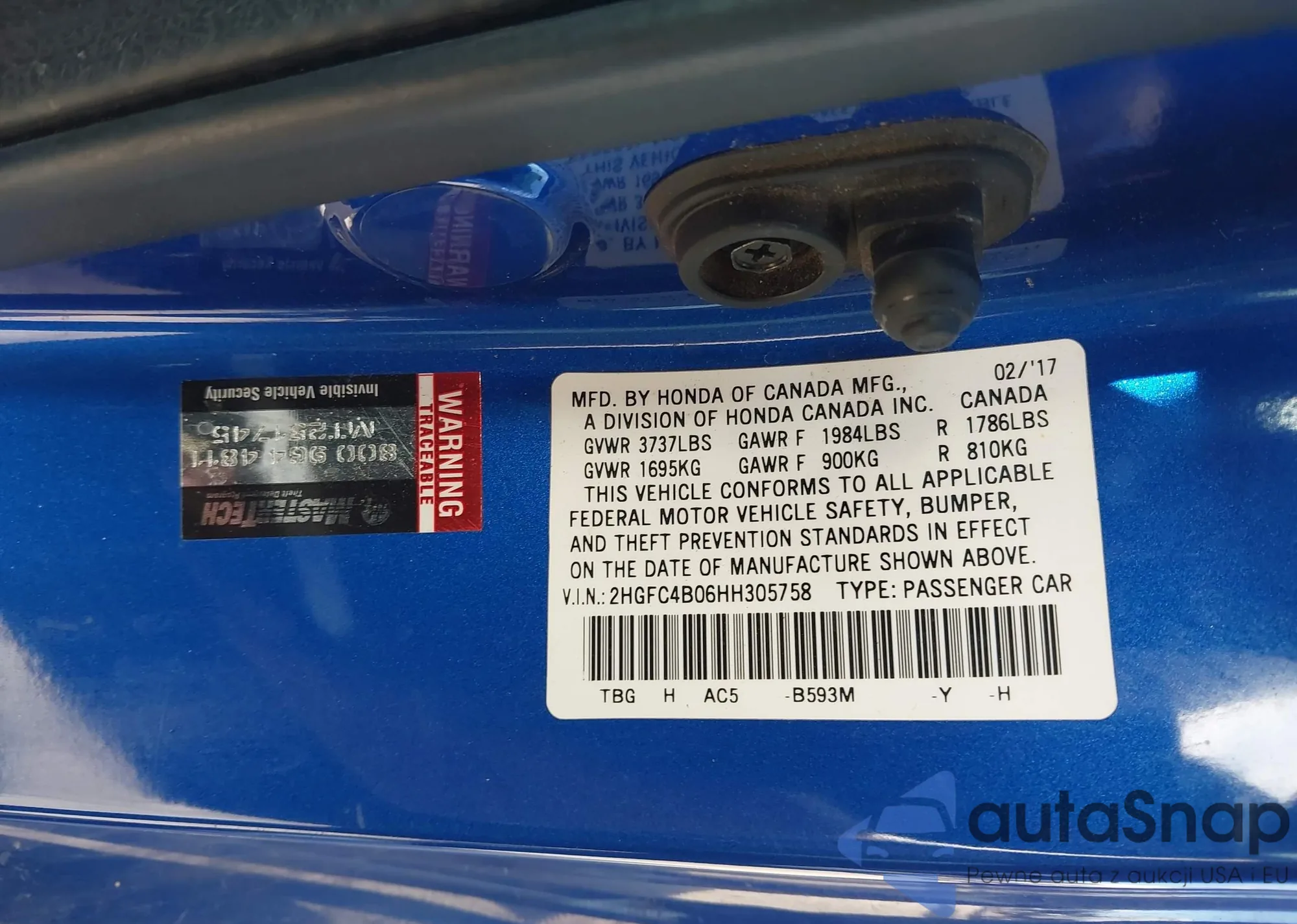 Samochód Honda Civic 2017 (VIN 2HGFC4B06HH305758) nie był wcześniej licytowany. Dokumenty są czyste, przebieg odpowiada lub jest niższy niż średnia rynku. Sprzedaje go firma ubezpieczeniowa – polecamy zakup. Dostawa do portu zajmie ok. 6–8 tygodni.