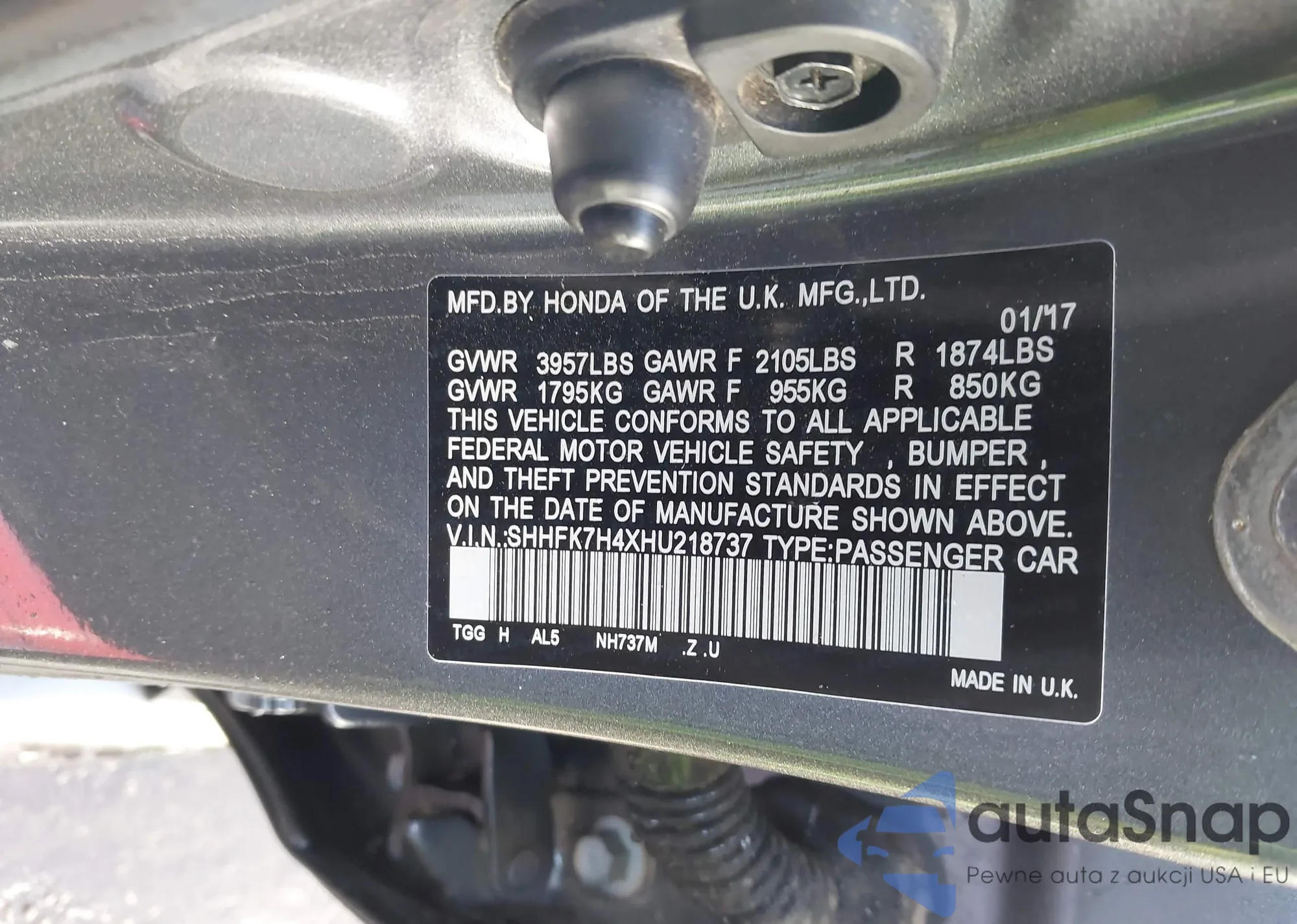 • VIN: SHHFK7H4XHU218737