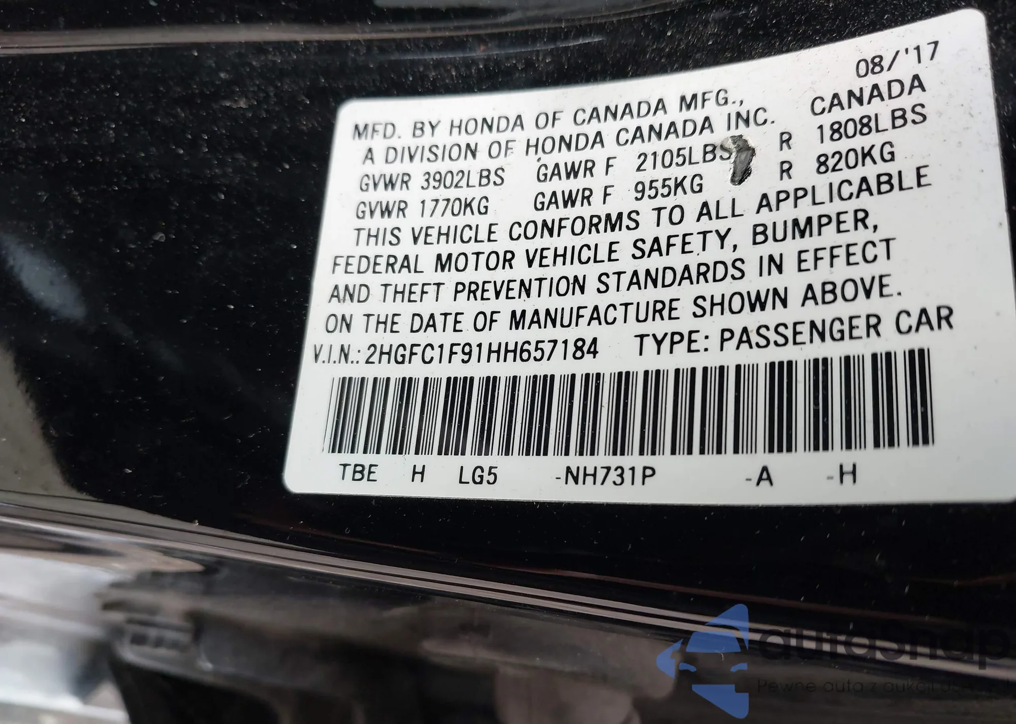 VIN: 2HGFC1F91HH657184