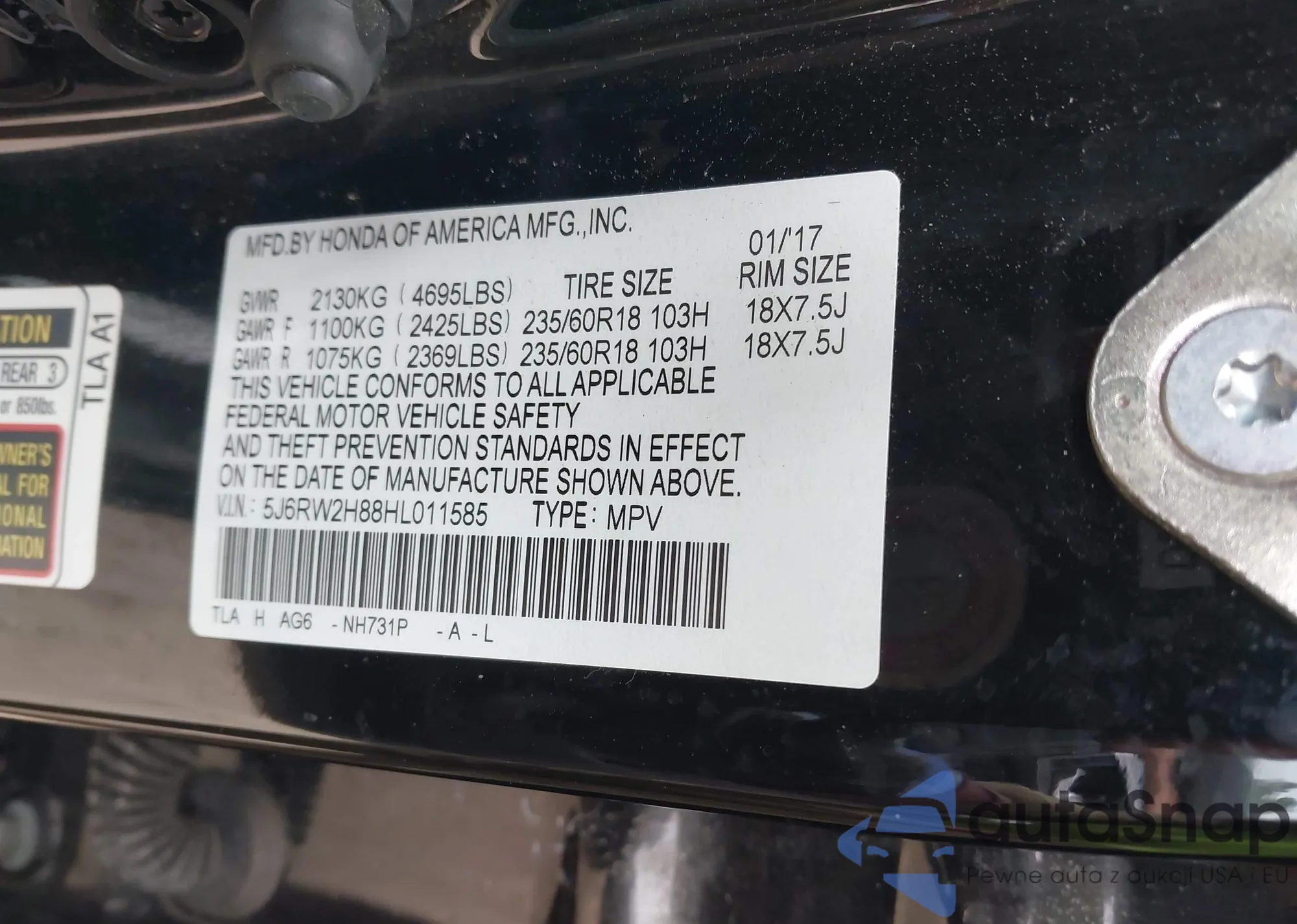 VIN: 5J6RW2H88HL011585