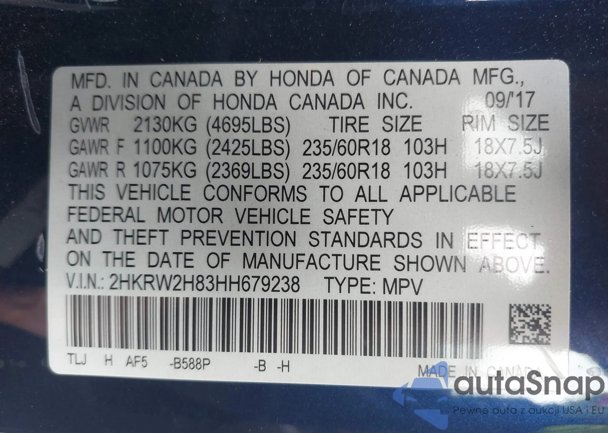VIN: 2HKRW2H83HH679238