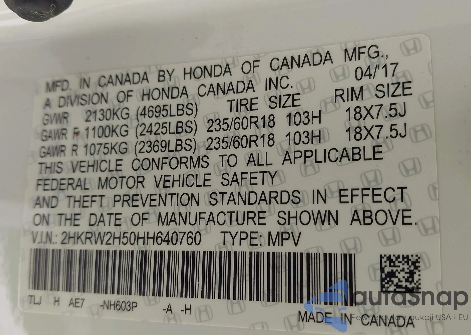 VIN: 2HKRW2H50HH640760