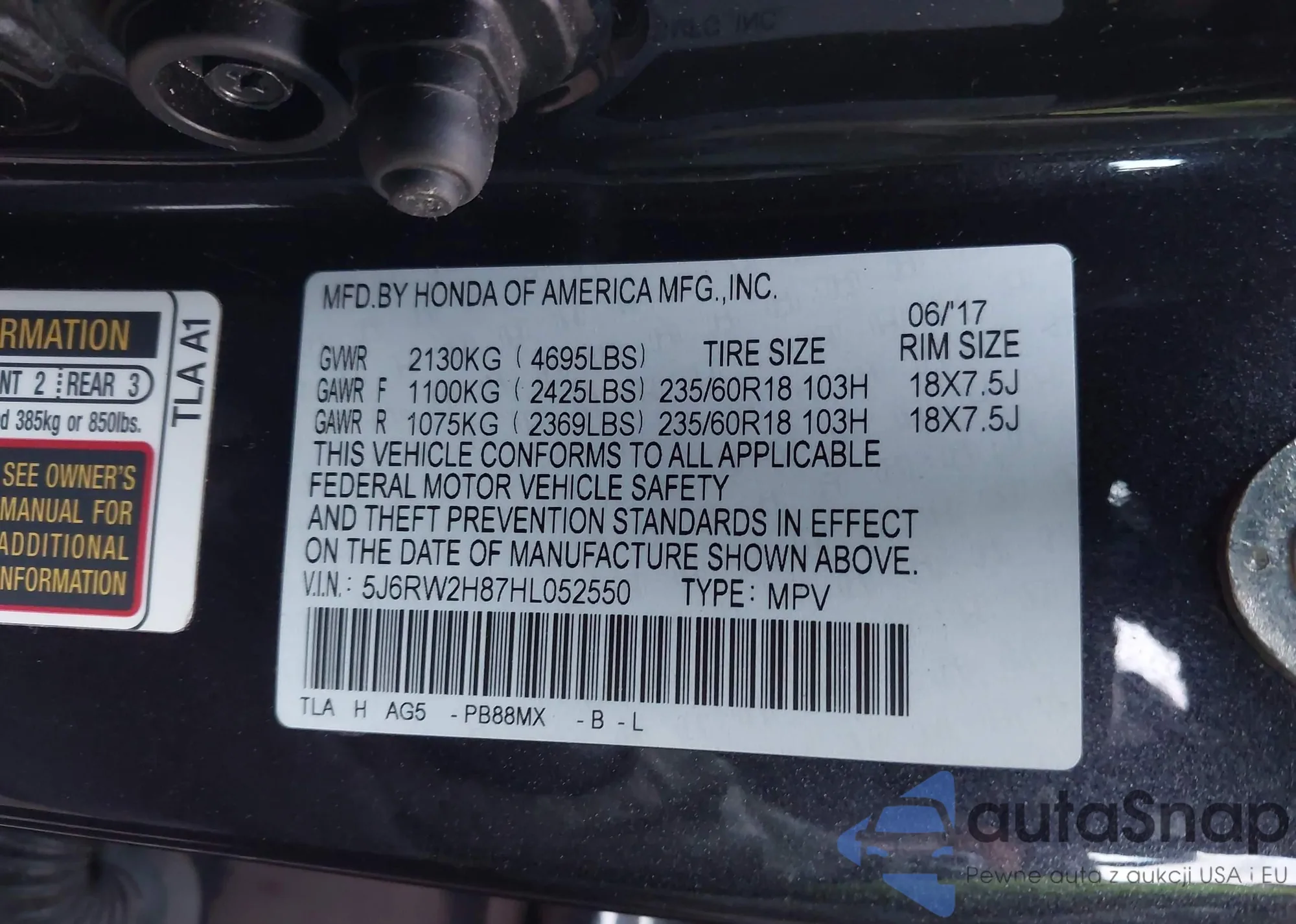 VIN: 5J6RW2H87HL052550