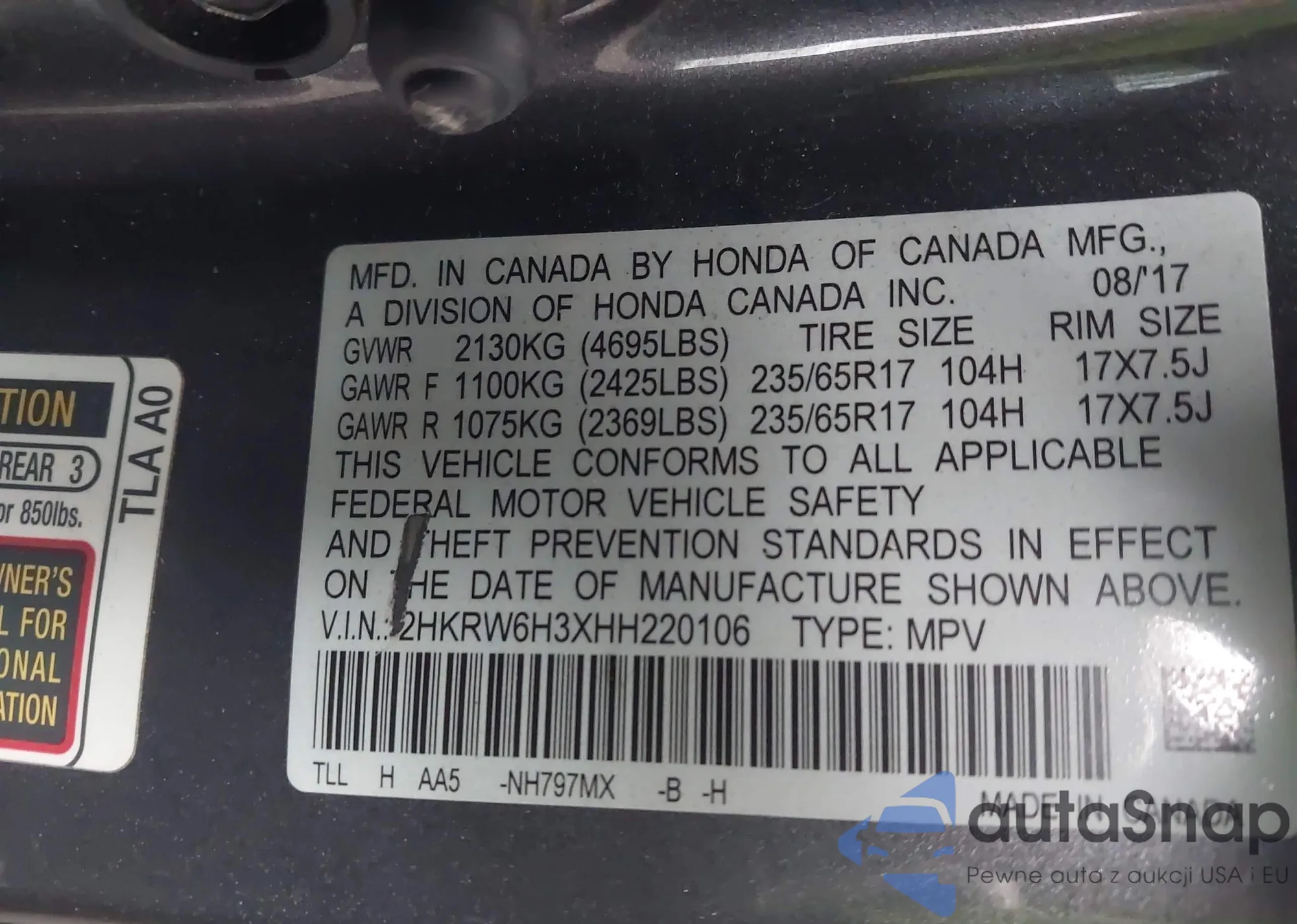 Samochód Honda CR-V 2017 (VIN 2HKRW6H3XHH220106) nie był wcześniej licytowany. Dokumenty są czyste, przebieg odpowiada lub jest niższy niż średnia rynku. Sprzedaje go firma ubezpieczeniowa – polecamy zakup. Dostawa do portu zajmie ok. 6–8 tygodni.
