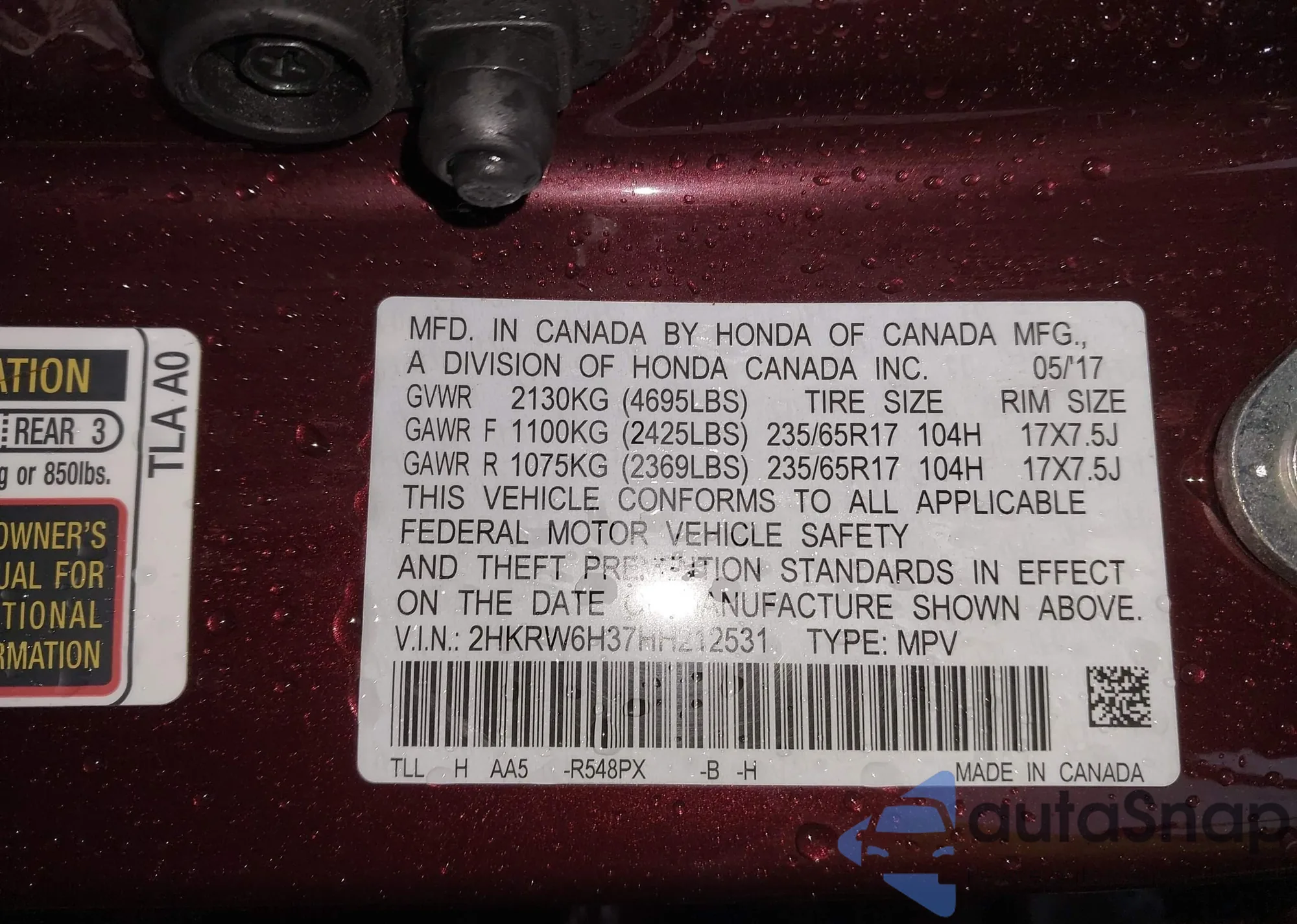 VIN: 2HKRW6H37HH212531