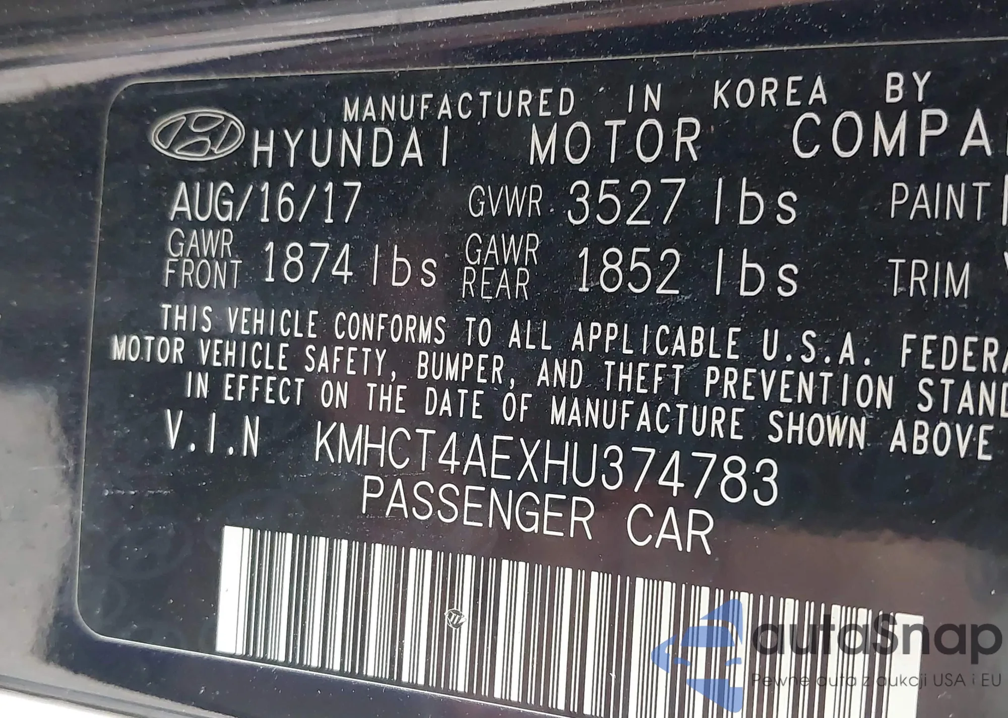 VIN: KMHCT4AEXHU374783