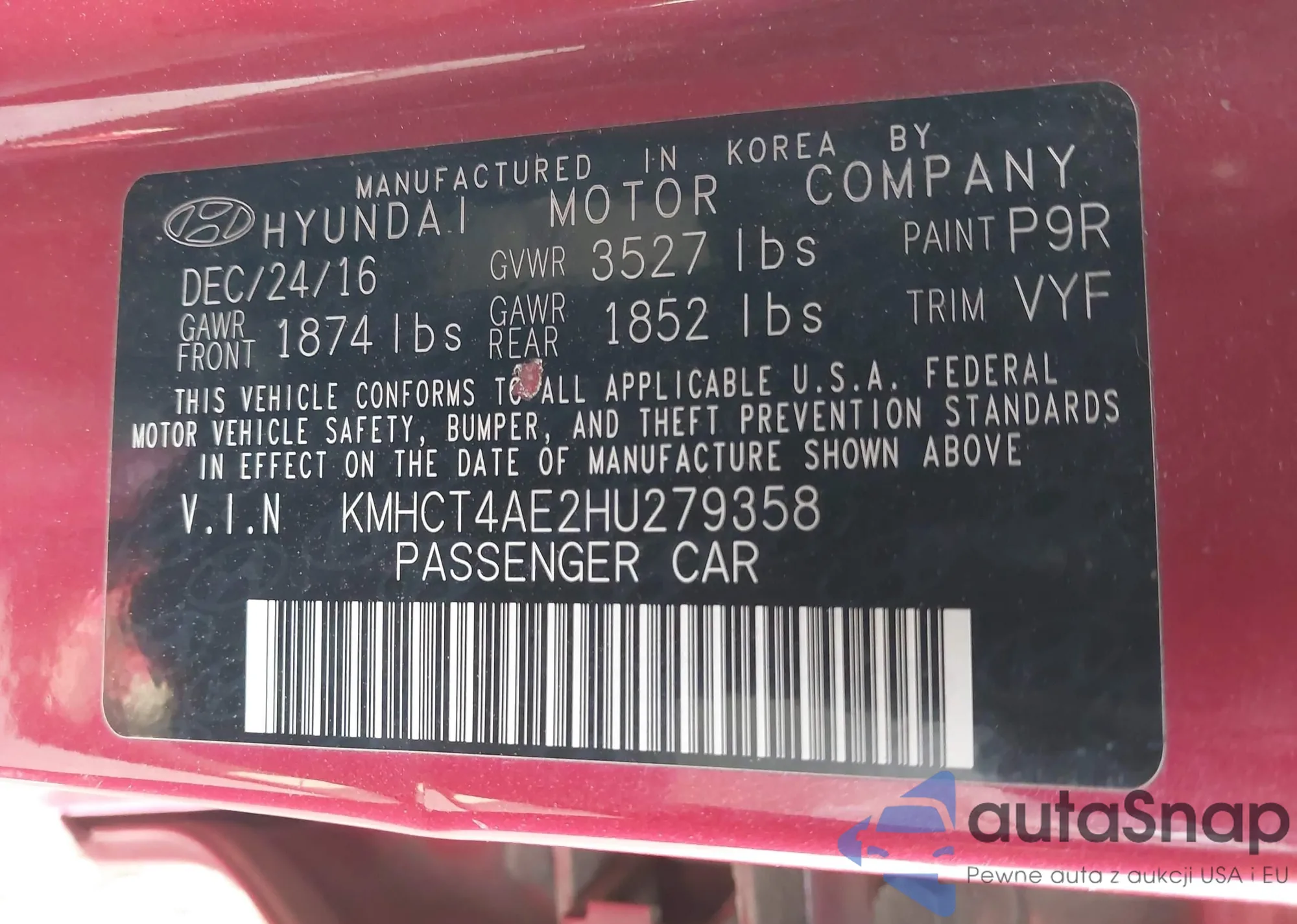 VIN: KMHCT4AE2HU279358
