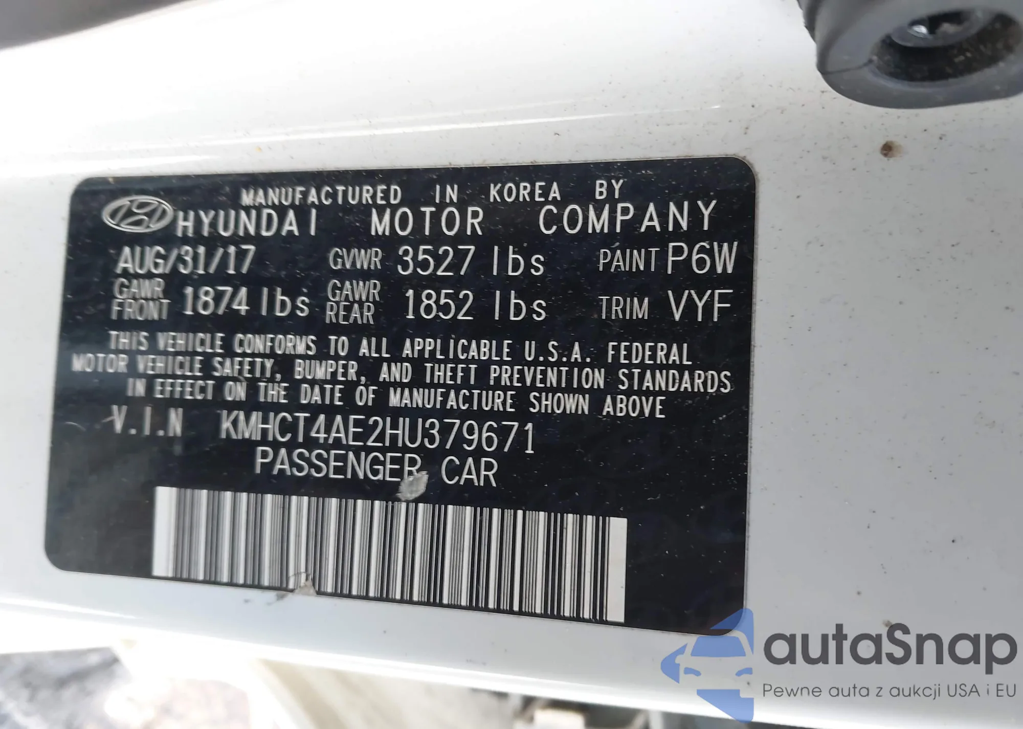 Samochód Hyundai Accent 2017 (VIN KMHCT4AE2HU379671) nie był wcześniej licytowany. Dokumenty są czyste, przebieg odpowiada lub jest niższy niż średnia rynku. Sprzedaje go firma ubezpieczeniowa – polecamy zakup. Dostawa do portu zajmie ok. 6–8 tygodni.