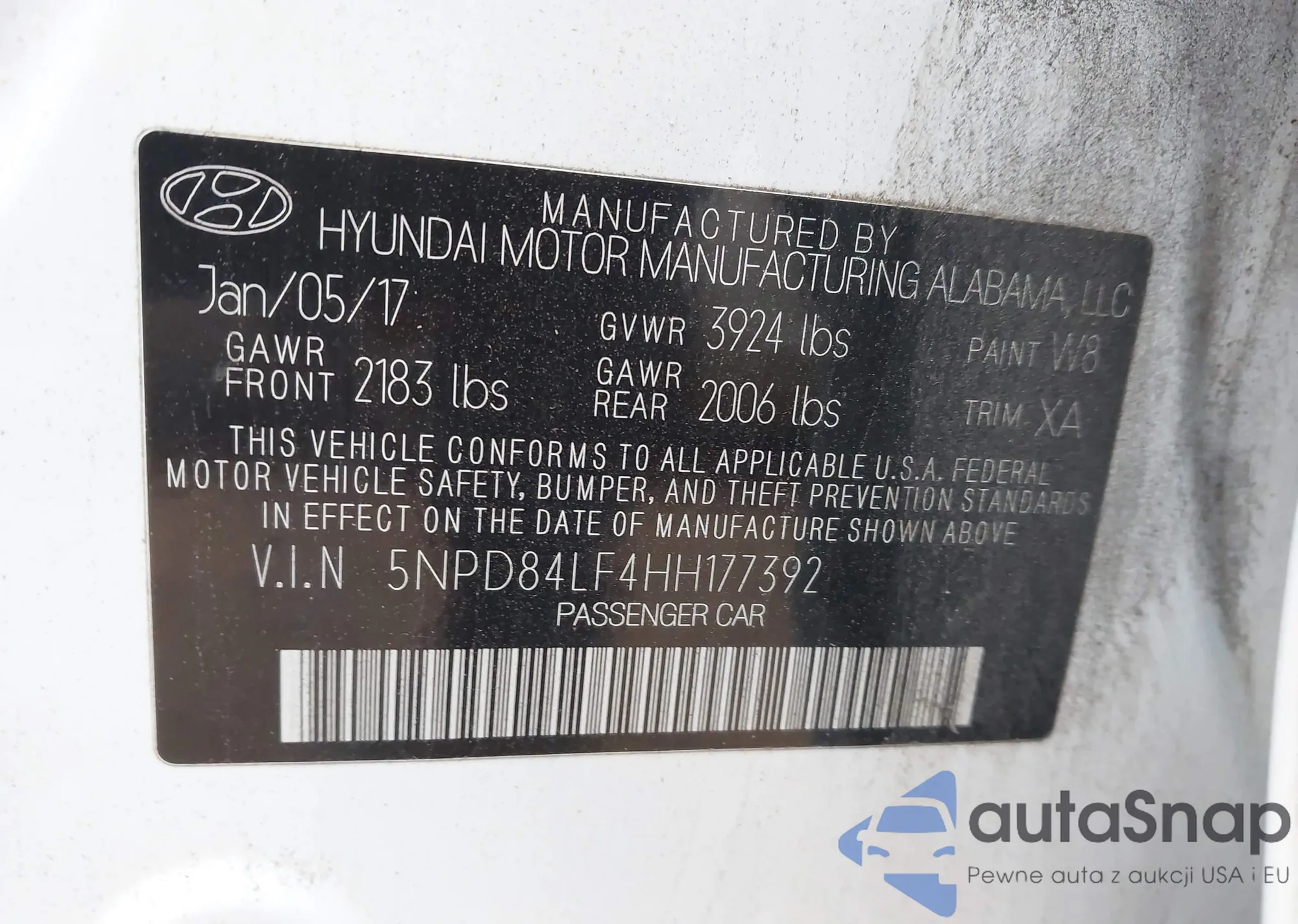 Samochód Hyundai Elantra 2017 (VIN 5NPD84LF4HH177392) nie był wcześniej licytowany. Dokumenty są czyste, przebieg odpowiada lub jest niższy niż średnia rynku. Sprzedaje go firma ubezpieczeniowa – polecamy zakup. Dostawa do portu zajmie ok. 6–8 tygodni.