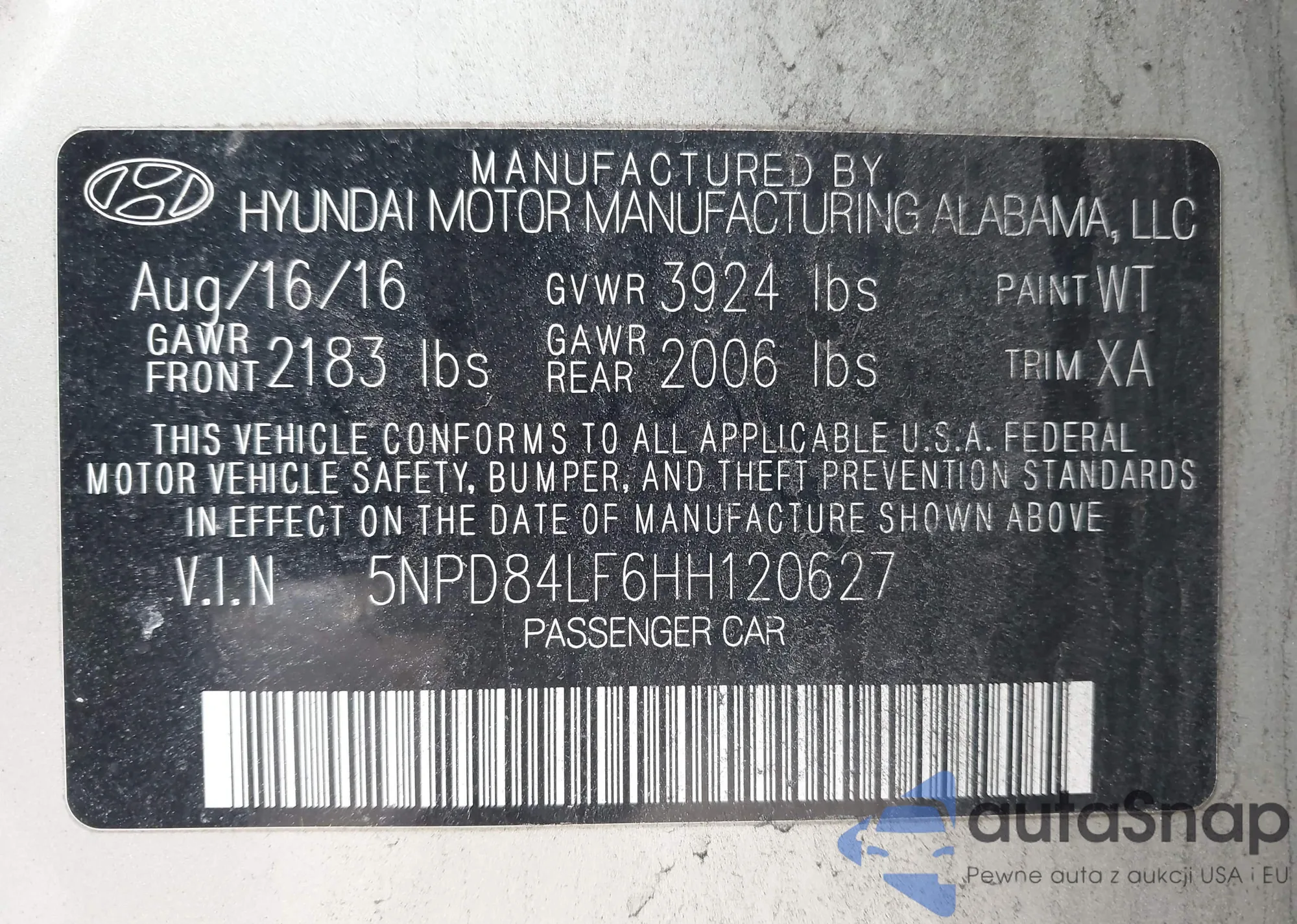• VIN: 5NPD84LF6HH120627