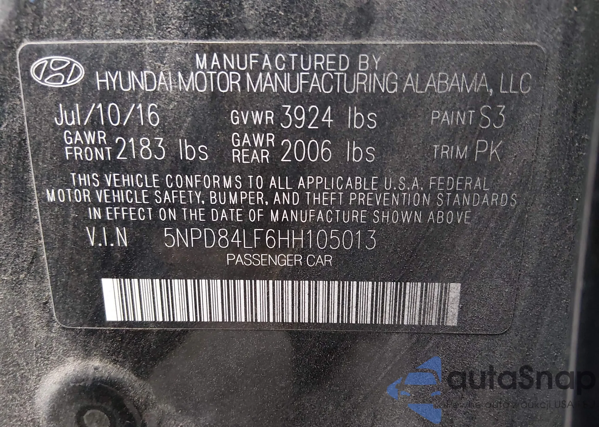 VIN: 5NPD84LF6HH105013