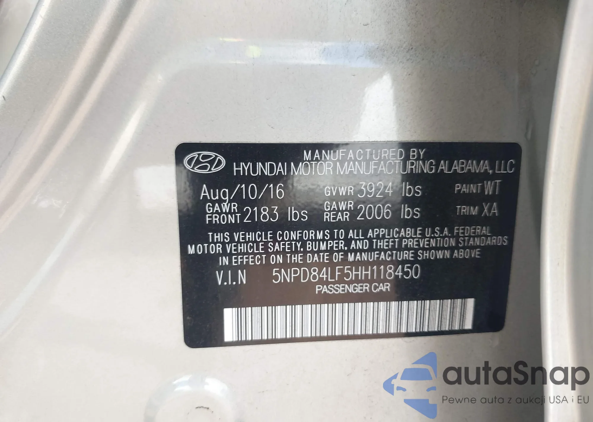 • VIN: 5NPD84LF5HH118450