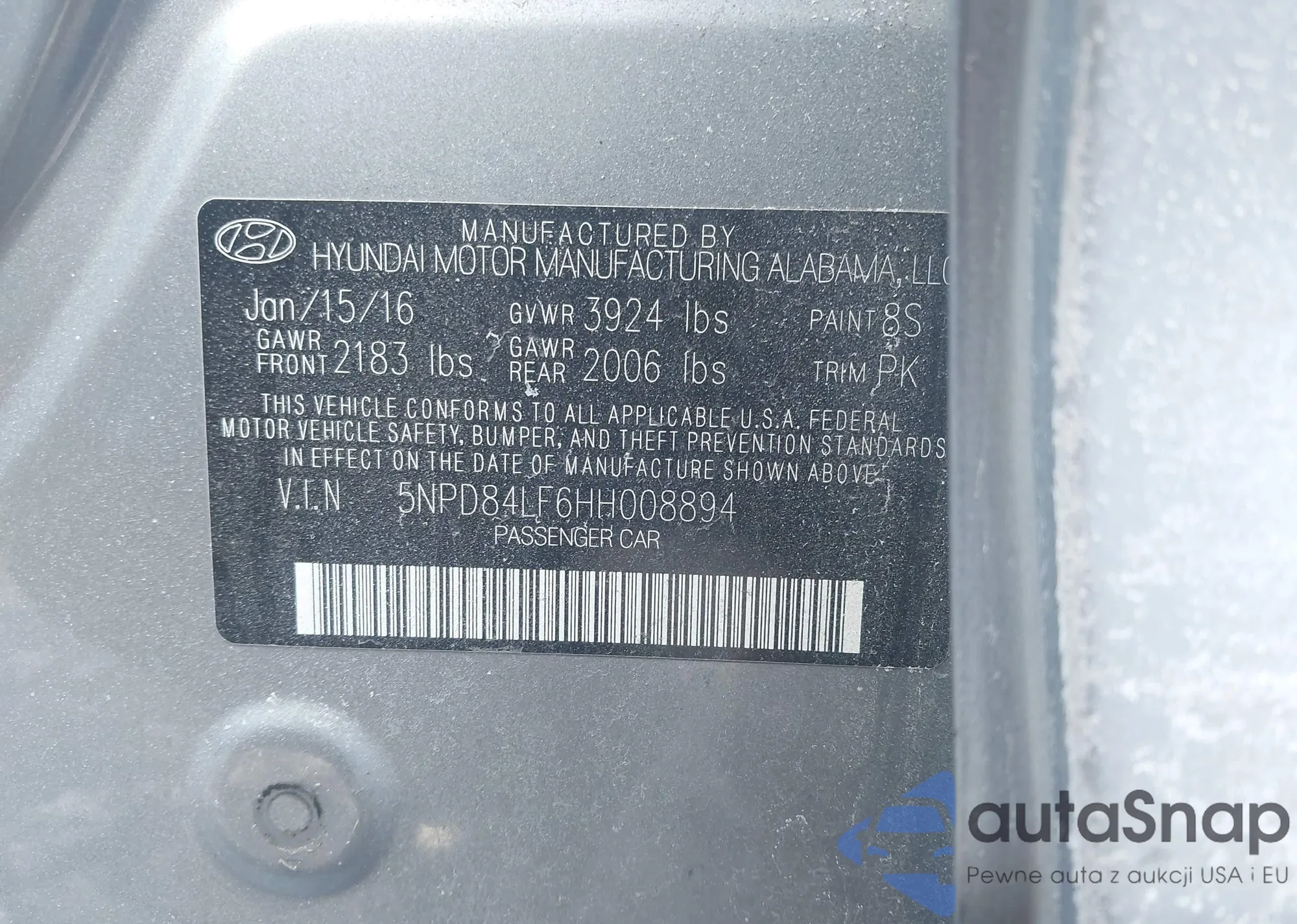Samochód Hyundai Elantra 2017 (VIN 5NPD84LF6HH008894) nie był wcześniej licytowany. Dokumenty są czyste, przebieg odpowiada lub jest niższy niż średnia rynku. Sprzedaje go firma ubezpieczeniowa – polecamy zakup. Dostawa do portu zajmie ok. 6–8 tygodni.