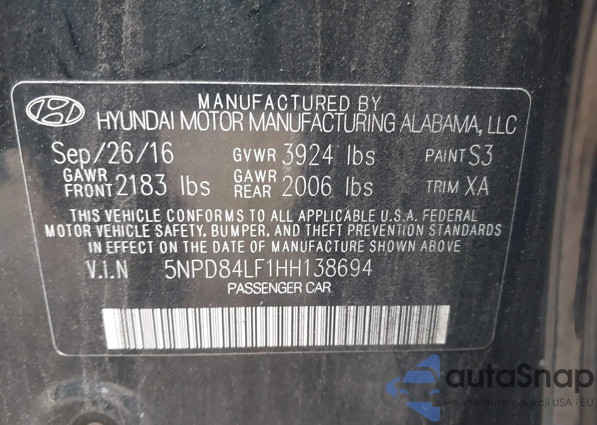 VIN: 5NPD84LF1HH138694