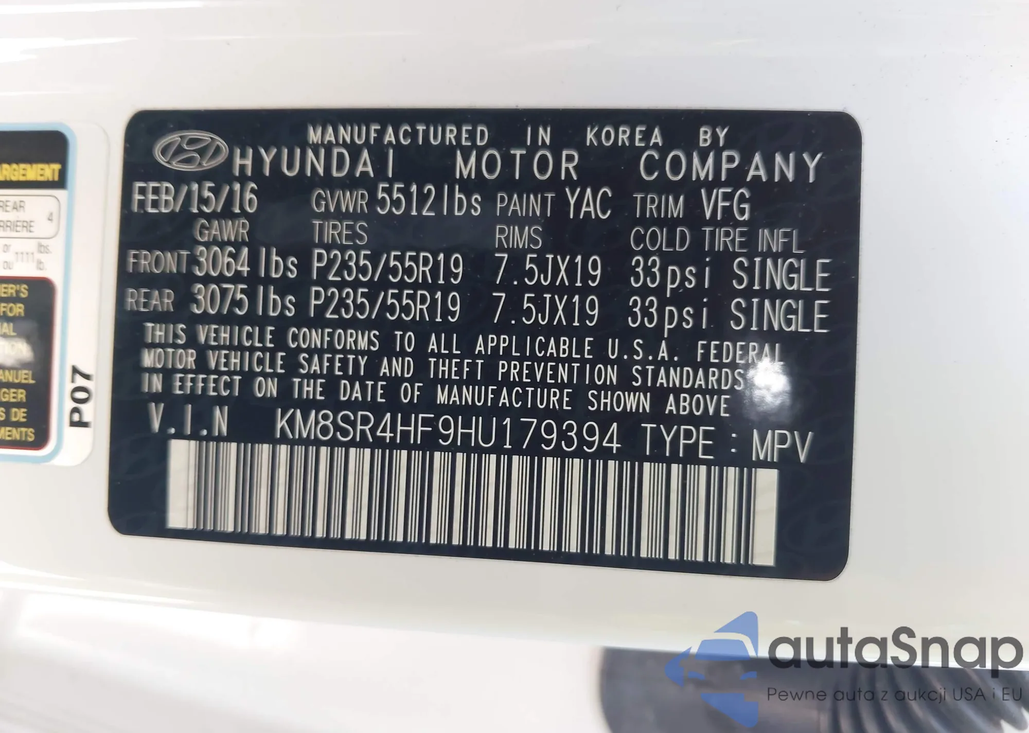 VIN: KM8SR4HF9HU179394