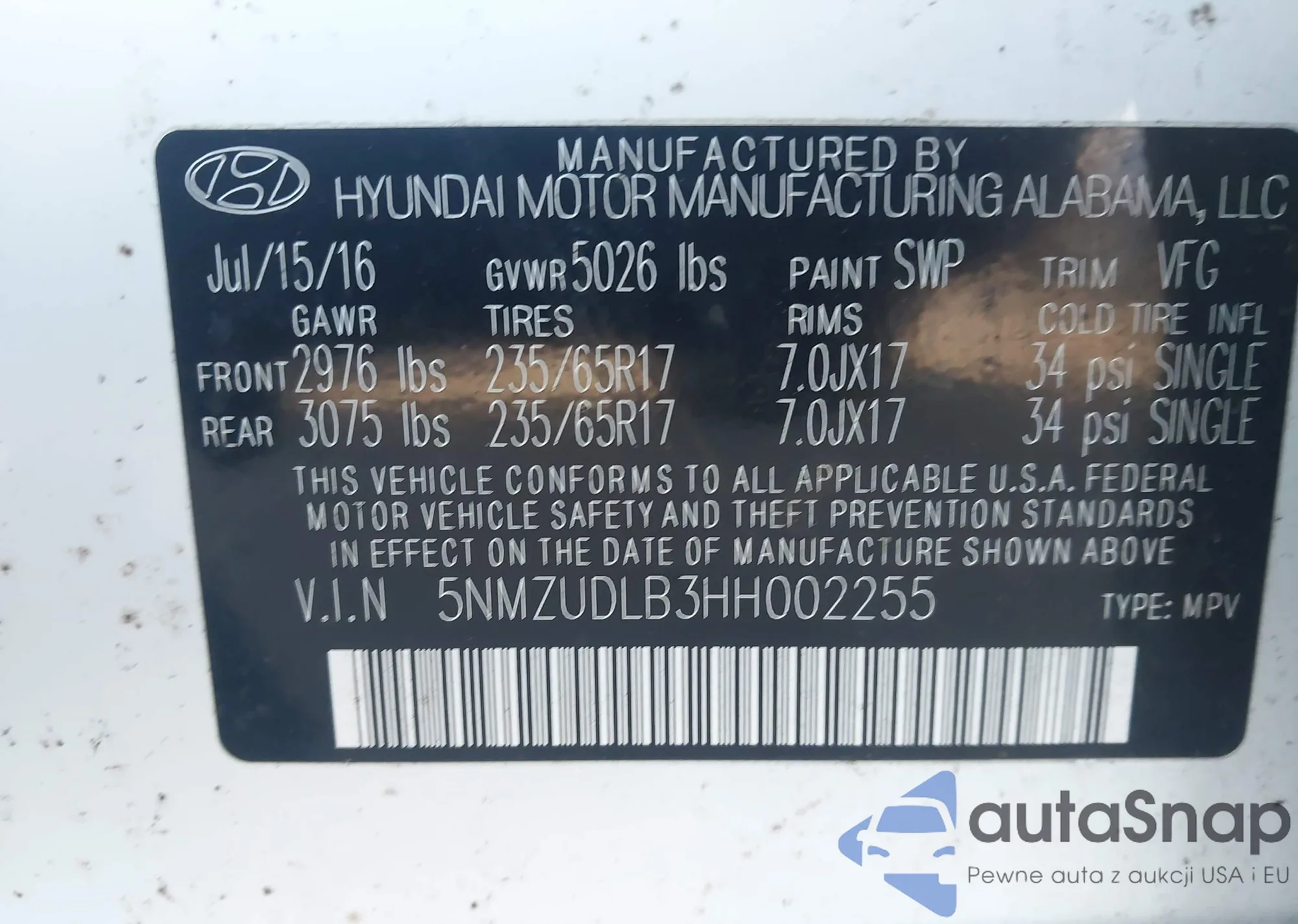 VIN: 5NMZUDLB3HH002255