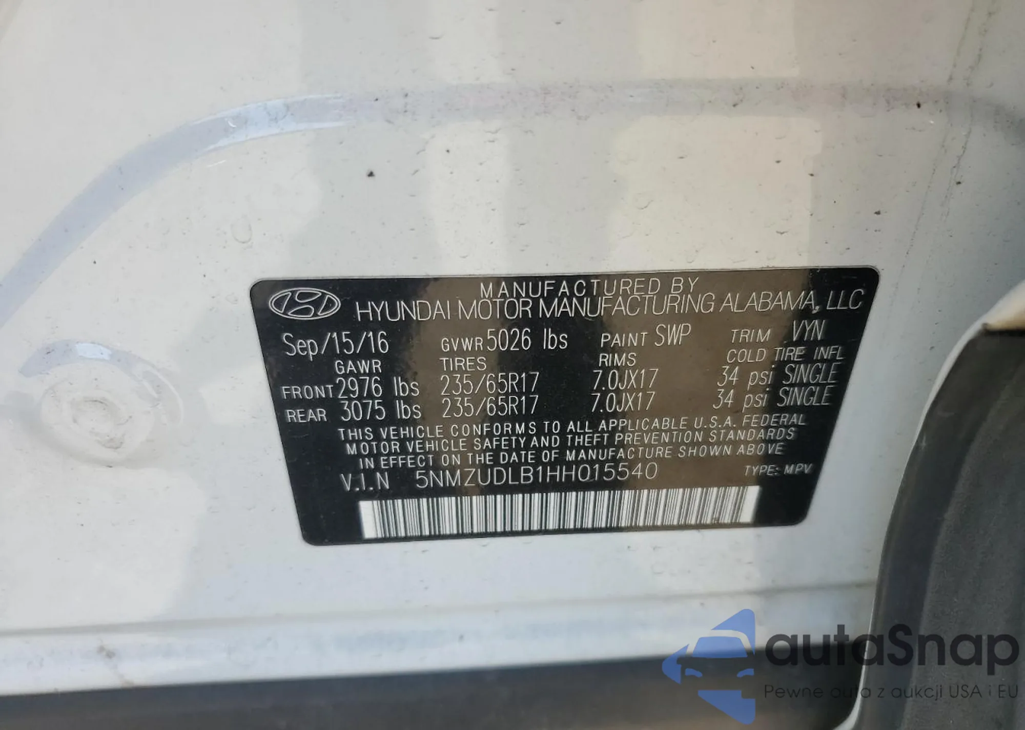VIN: 5NMZUDLB1HH015540
