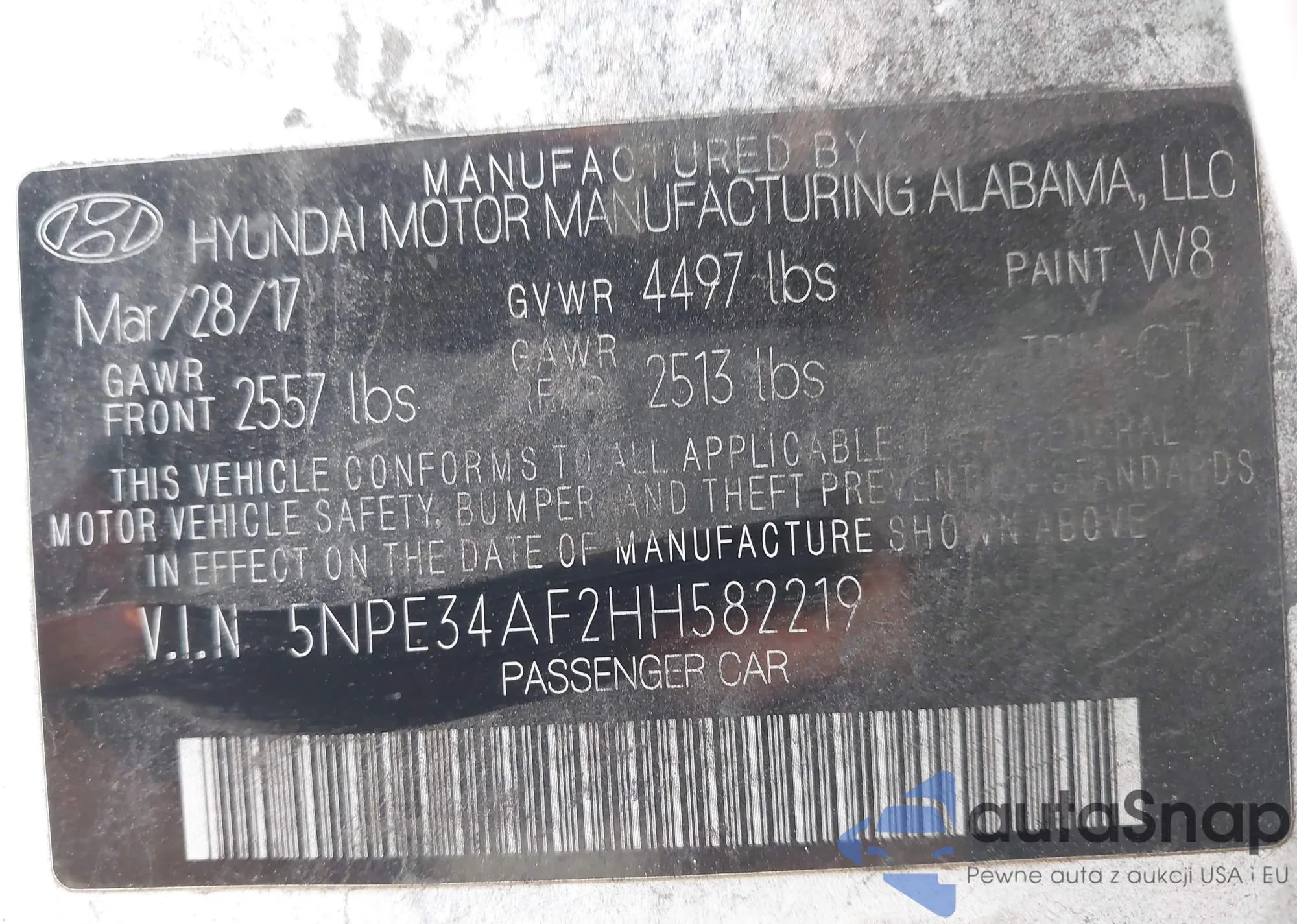 VIN: 5NPE34AF2HH582219