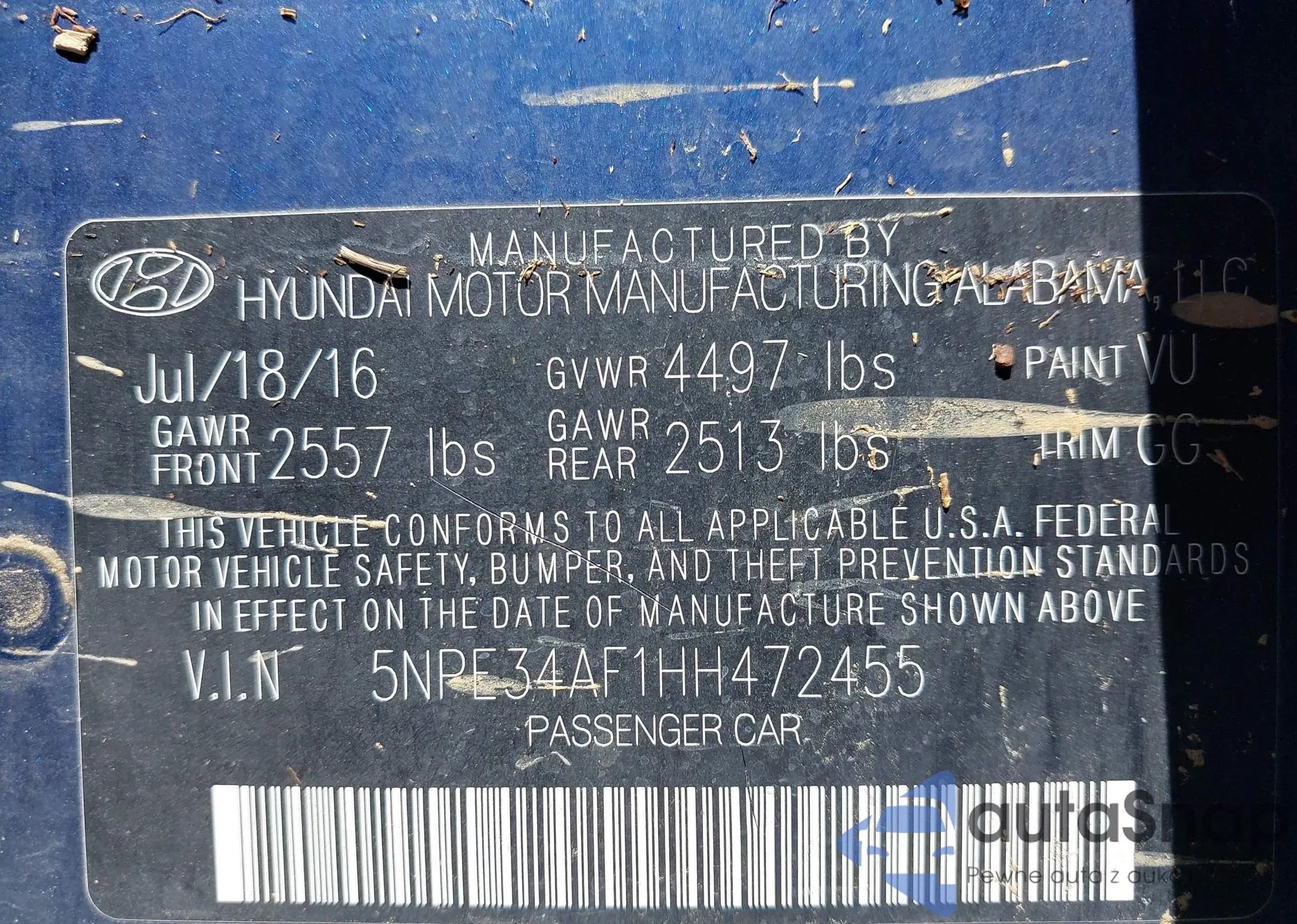 VIN: 5NPE34AF1HH472455