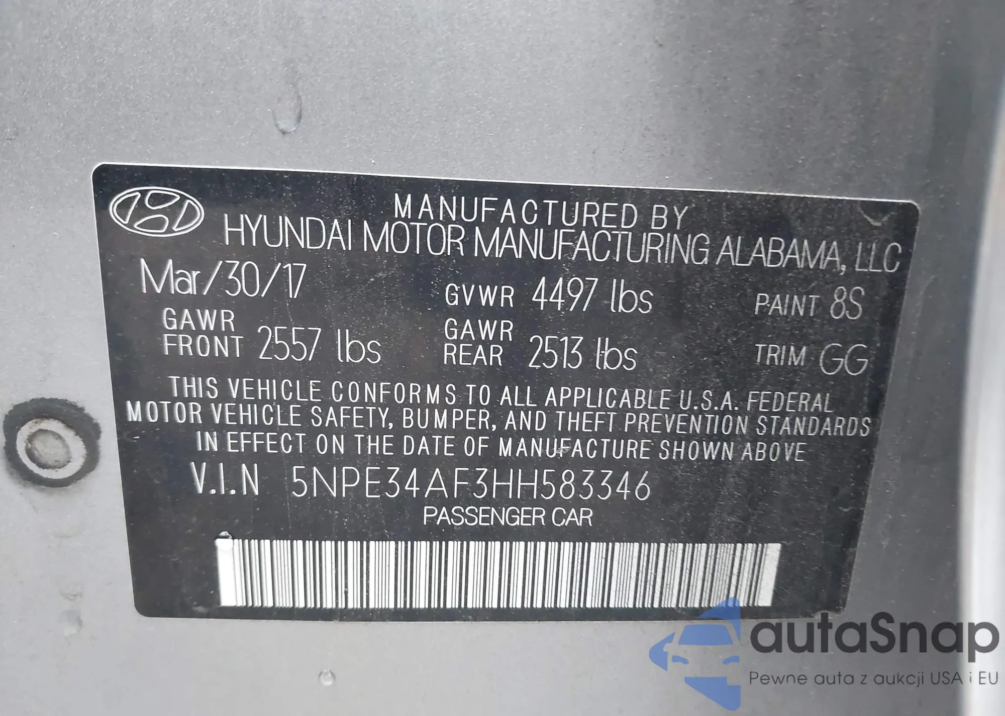 VIN: 5NPE34AF3HH583346