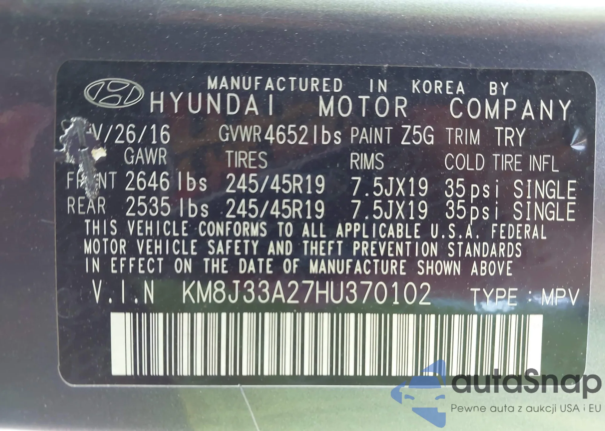 VIN: KM8J33A27HU370102