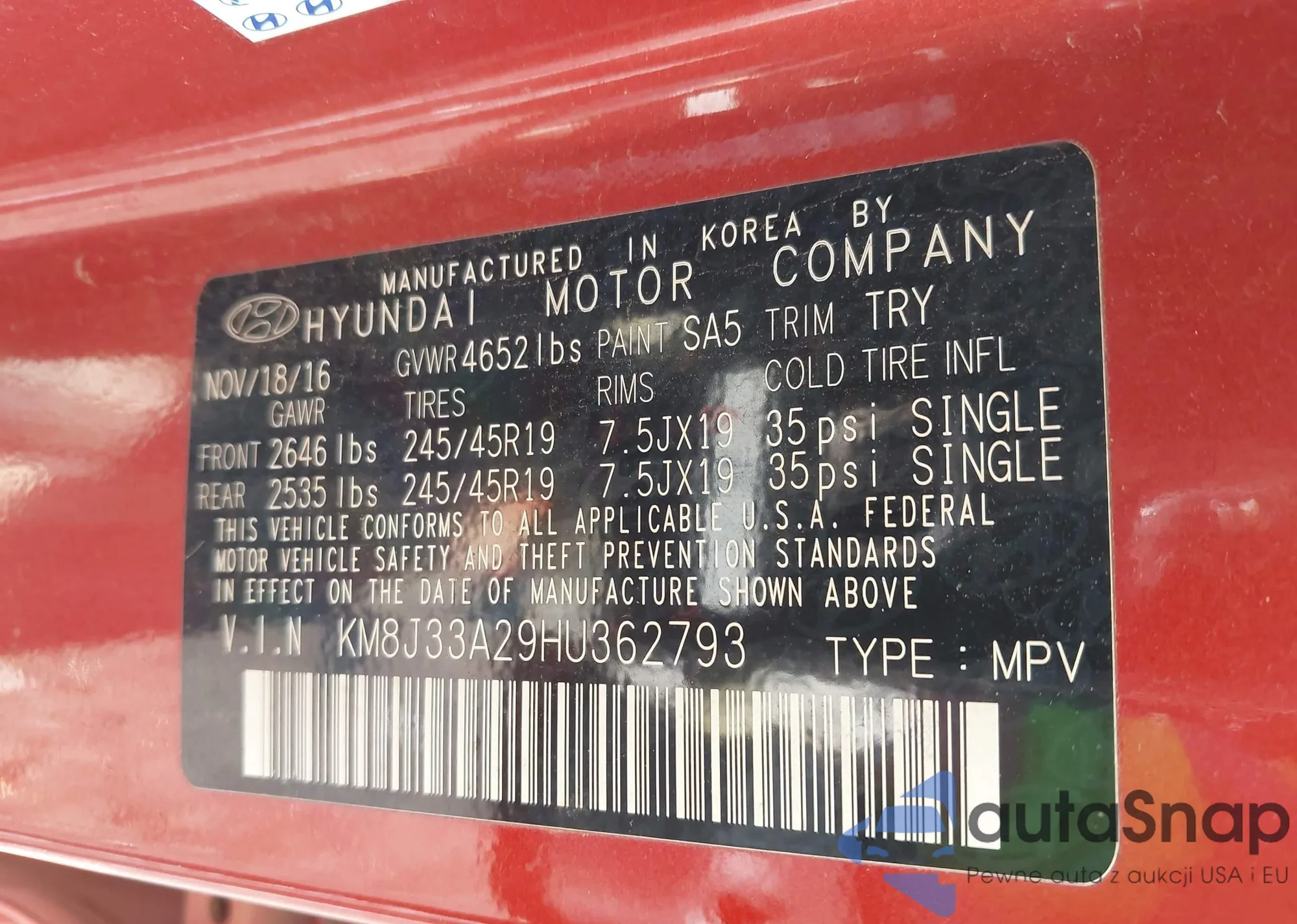 • VIN: KM8J33A29HU362793