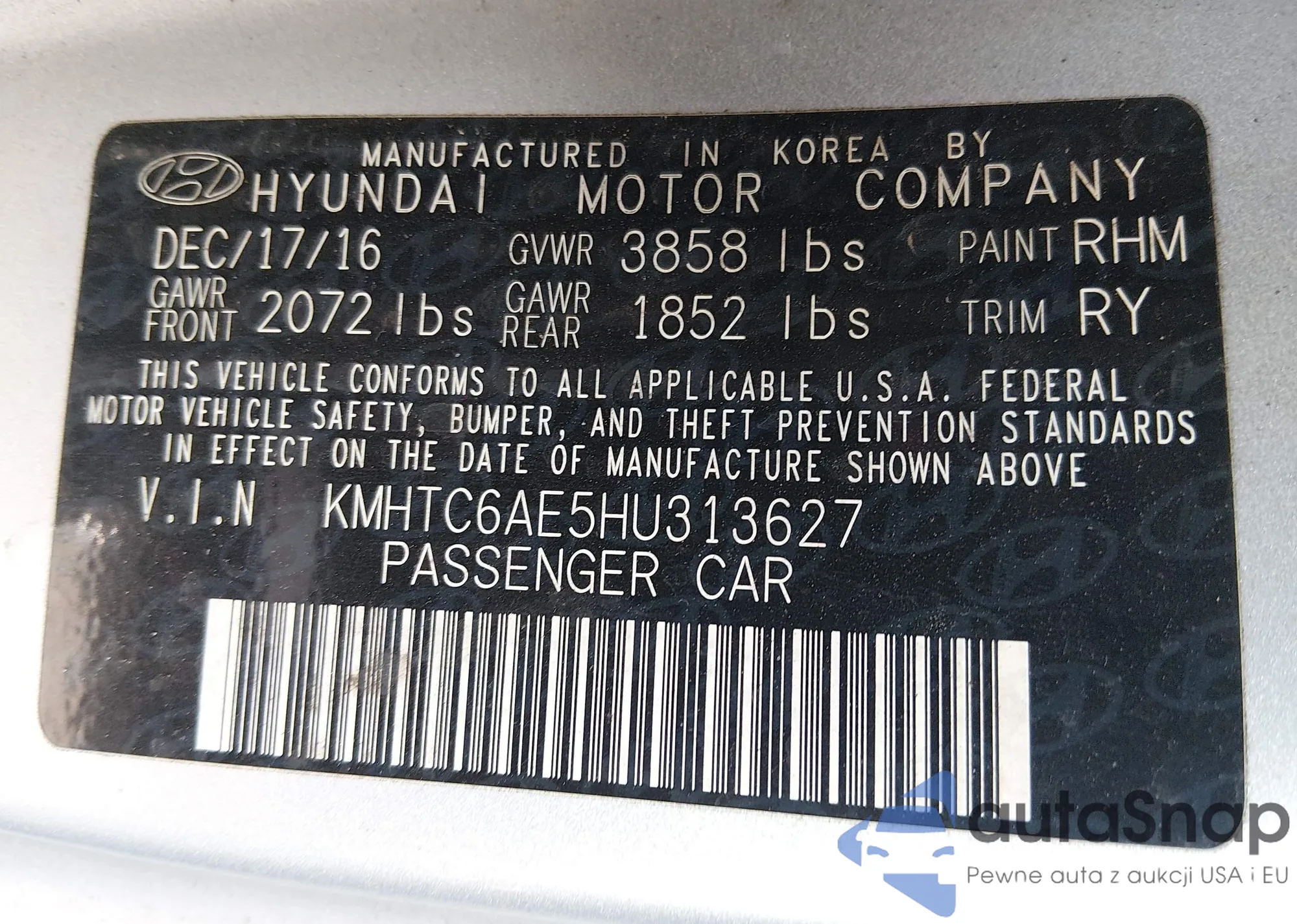 KMHTC6AE5HU313627 IAAI