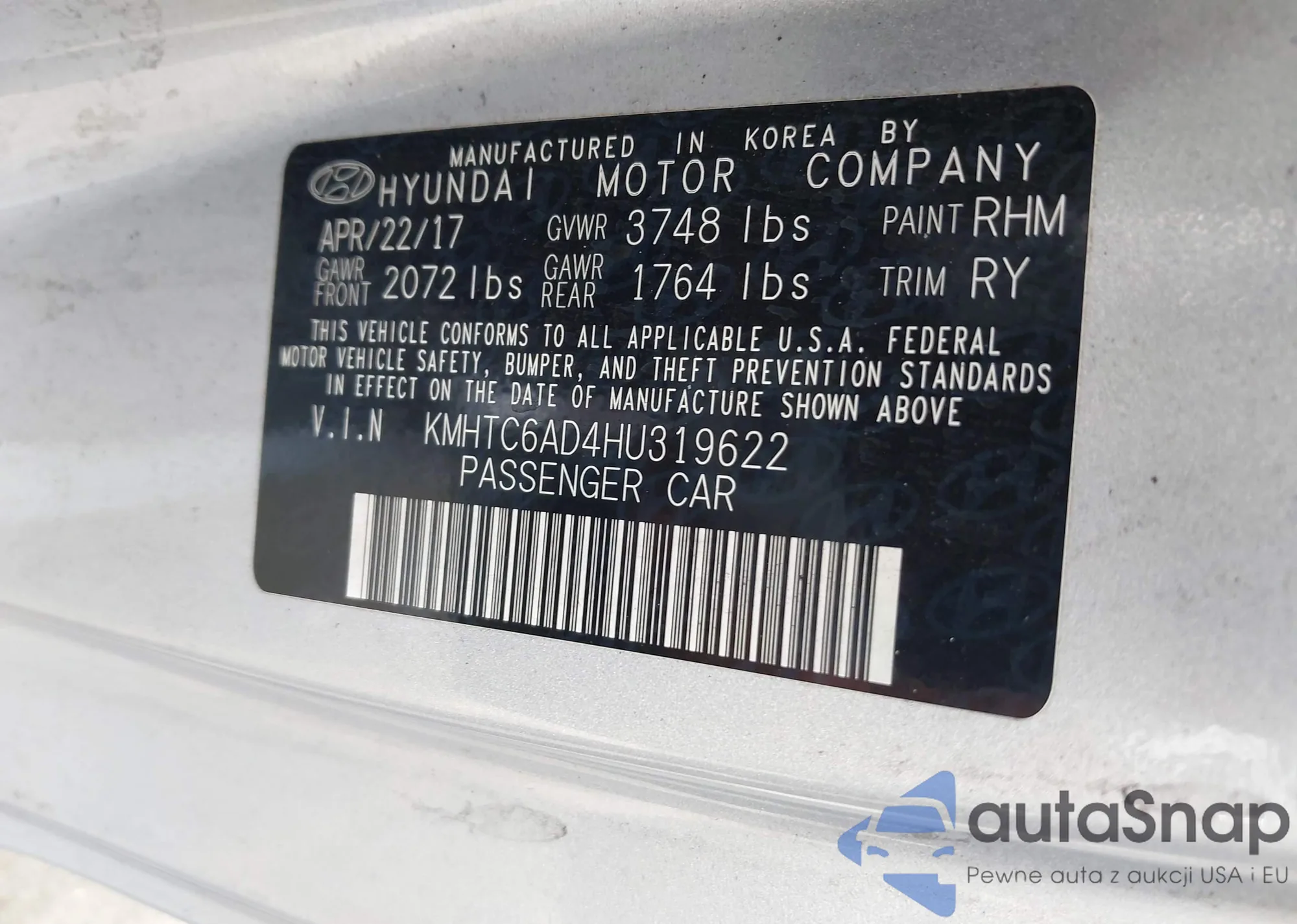 Samochód Hyundai Veloster 2017 (VIN KMHTC6AD4HU319622) nie był wcześniej licytowany. Dokumenty są czyste, przebieg odpowiada lub jest niższy niż średnia rynku. Sprzedaje go firma ubezpieczeniowa – polecamy zakup. Dostawa do portu zajmie ok. 6–8 tygodni.