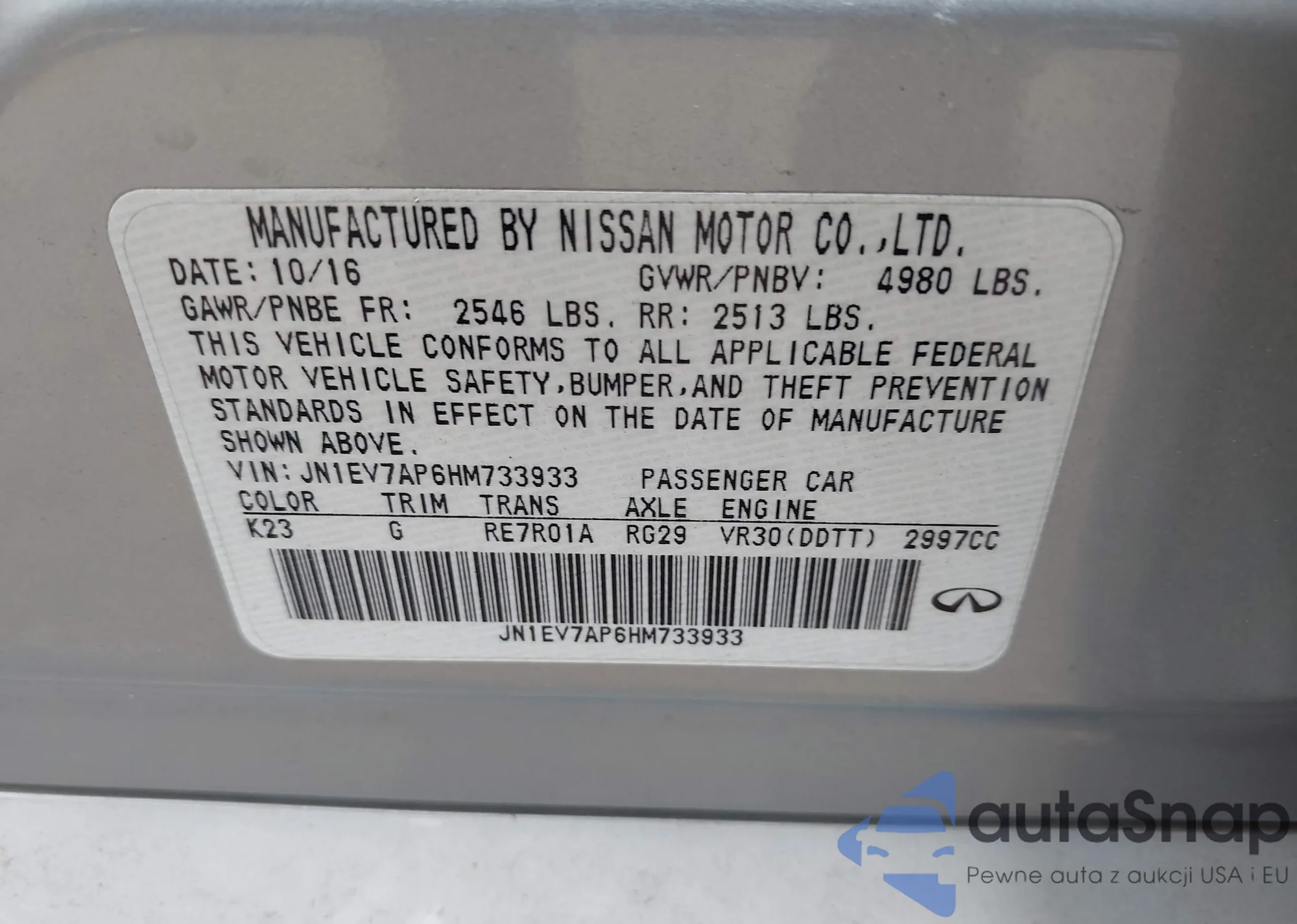 • VIN: JN1EV7AP6HM733933