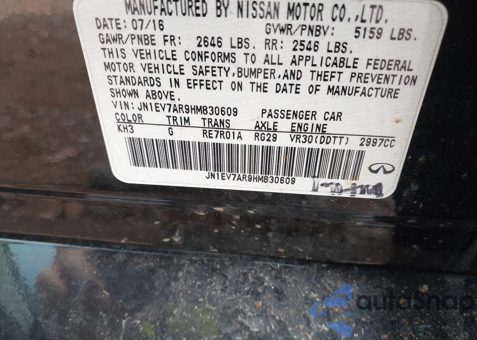 Samochód Infiniti Q50 2017 (VIN JN1EV7AR9HM830609) był już licytowany 1 razy i/lub sprzedaje go niezweryfikowany sprzedawca. Zalecamy raport Carfax i potwierdzenie możliwości rejestracji pojazdu przed zakupem.