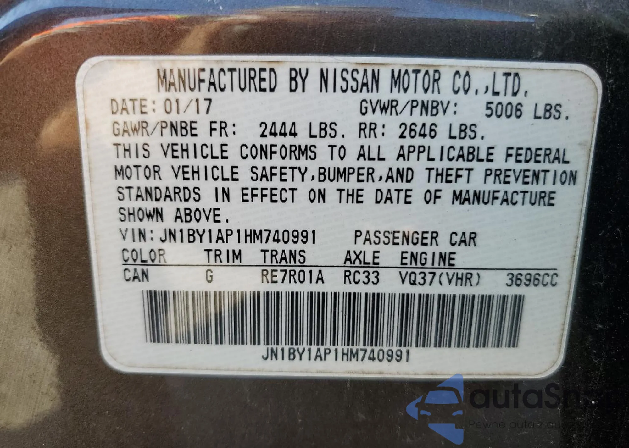 Samochód Infiniti Q70 2017 (VIN JN1BY1AP1HM740991) sprzedaje go niezweryfikowany sprzedawca. Zalecamy raport Carfax i potwierdzenie możliwości rejestracji pojazdu przed zakupem.