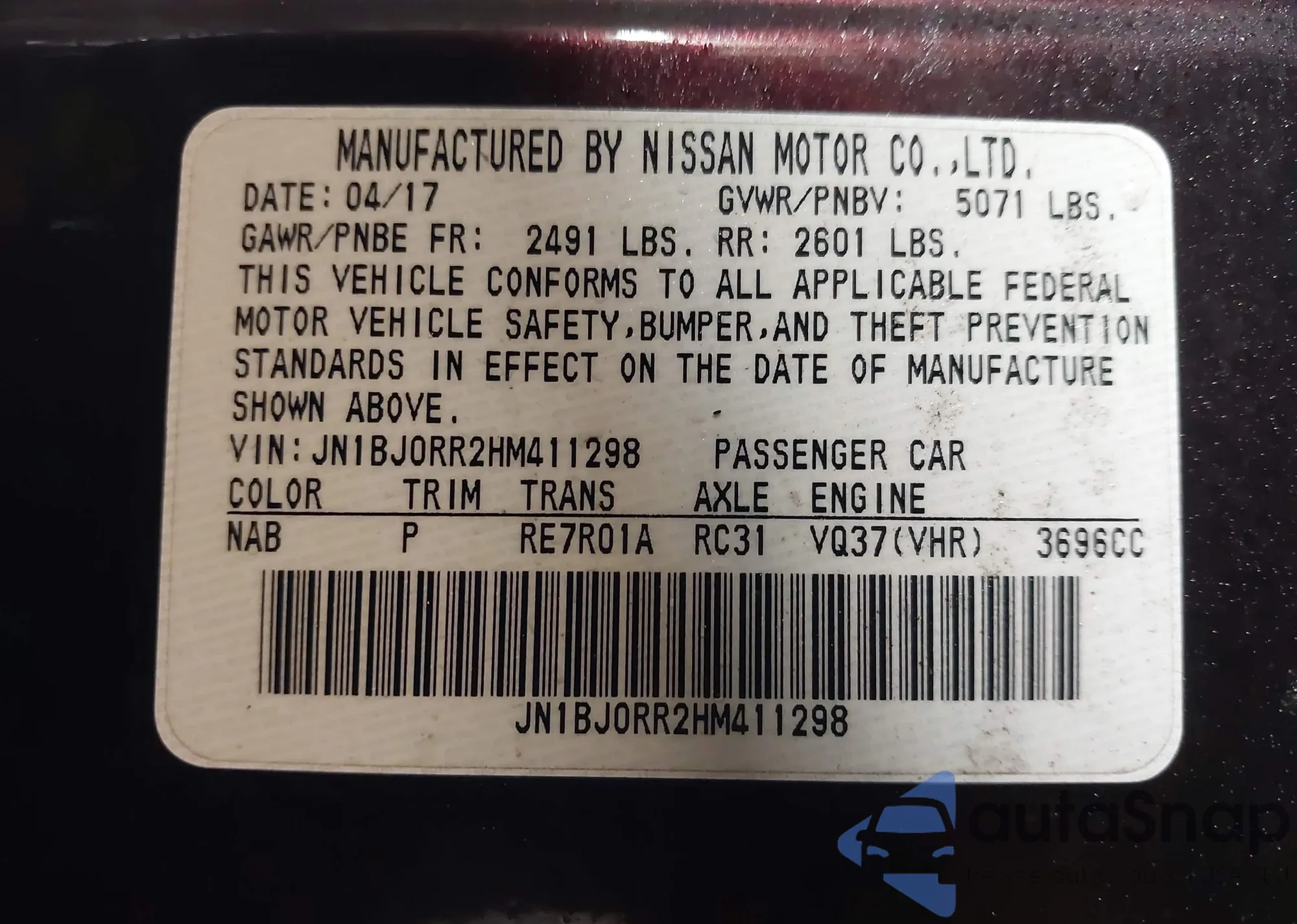 • VIN: JN1BJ0RR2HM411298