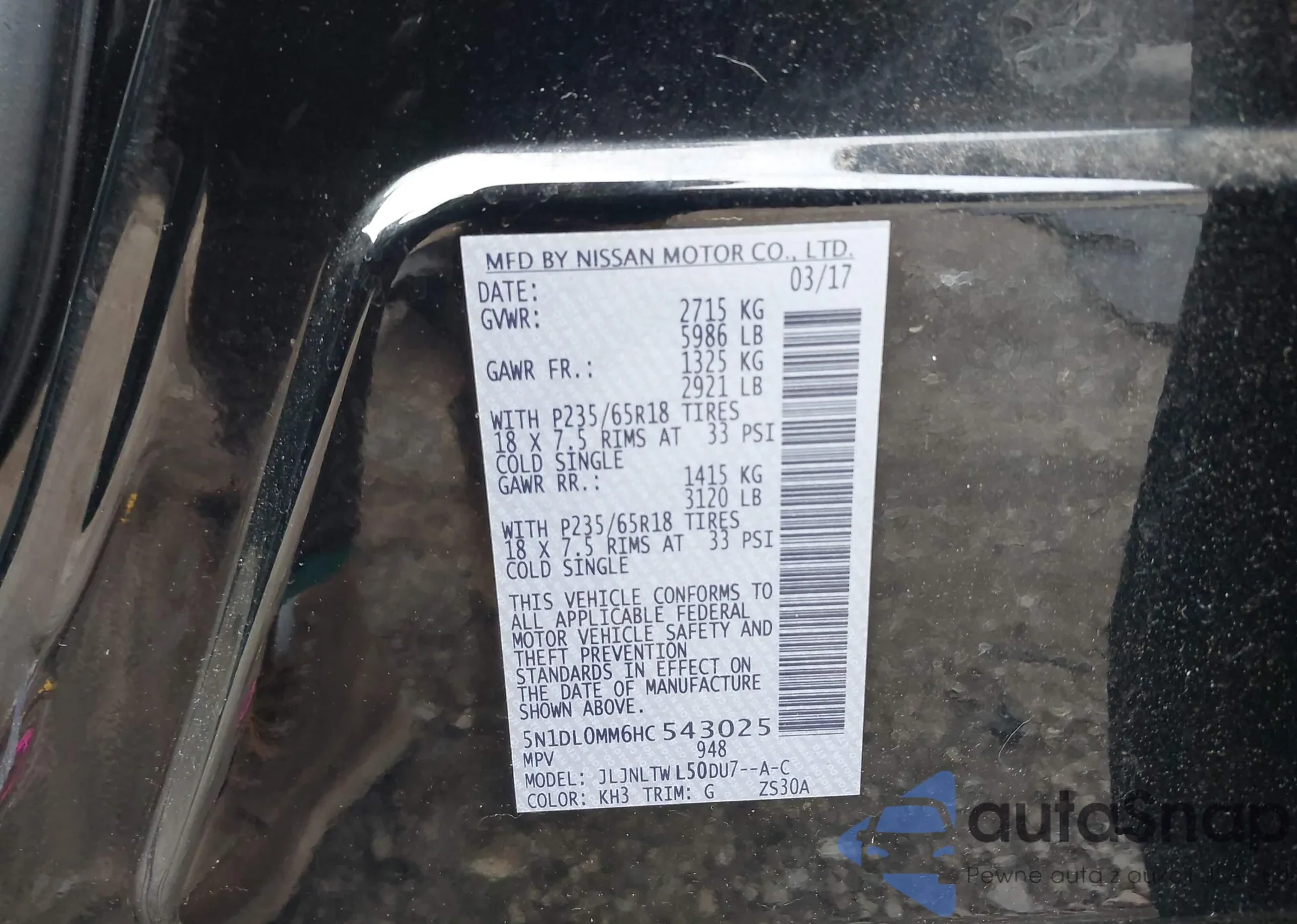 VIN: 5N1DL0MM6HC543025