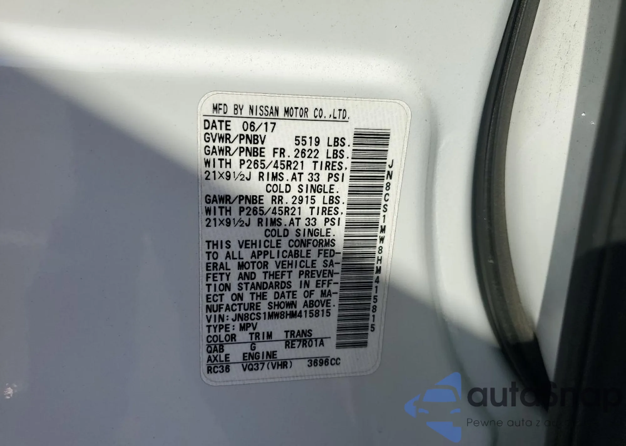 VIN: JN8CS1MW8HM415815