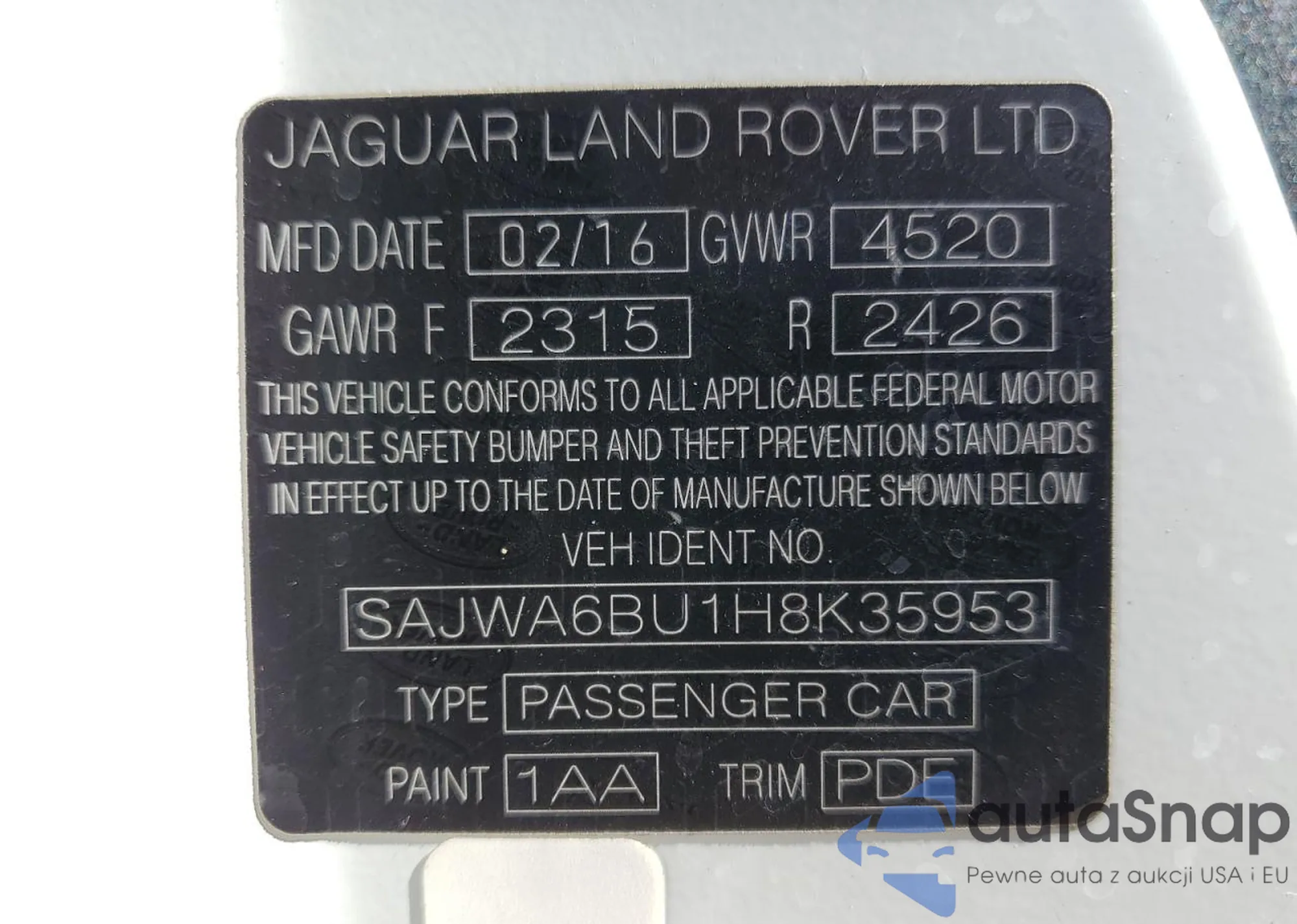 VIN: SAJWA6BU1H8K35953