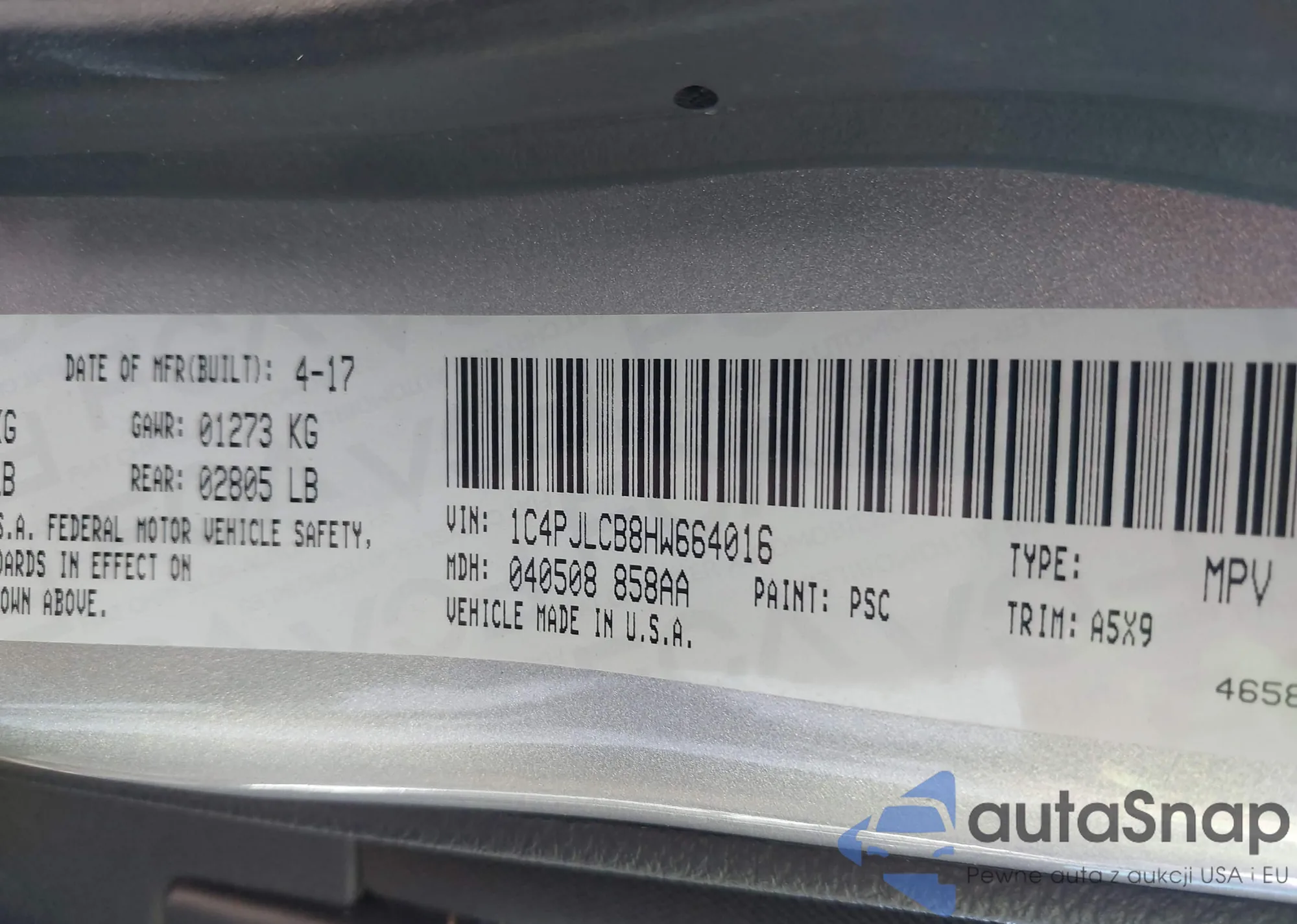 Samochód Jeep Cherokee 2017 (VIN 1C4PJLCB8HW664016) nie był wcześniej licytowany. Dokumenty są czyste, przebieg odpowiada lub jest niższy niż średnia rynku. Sprzedaje go firma ubezpieczeniowa – polecamy zakup. Dostawa do portu zajmie ok. 6–8 tygodni.