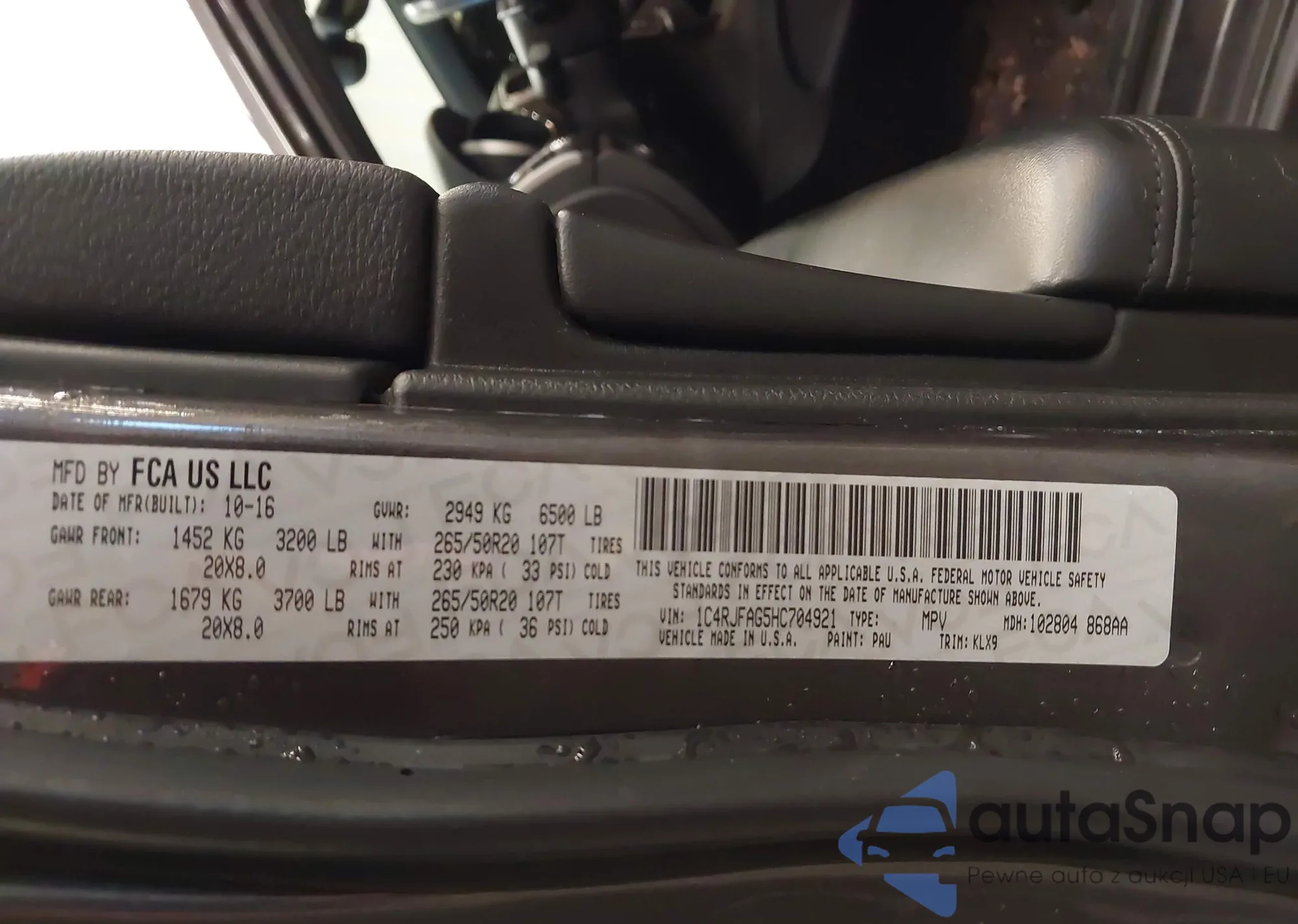 • VIN: 1C4RJFAG5HC704921