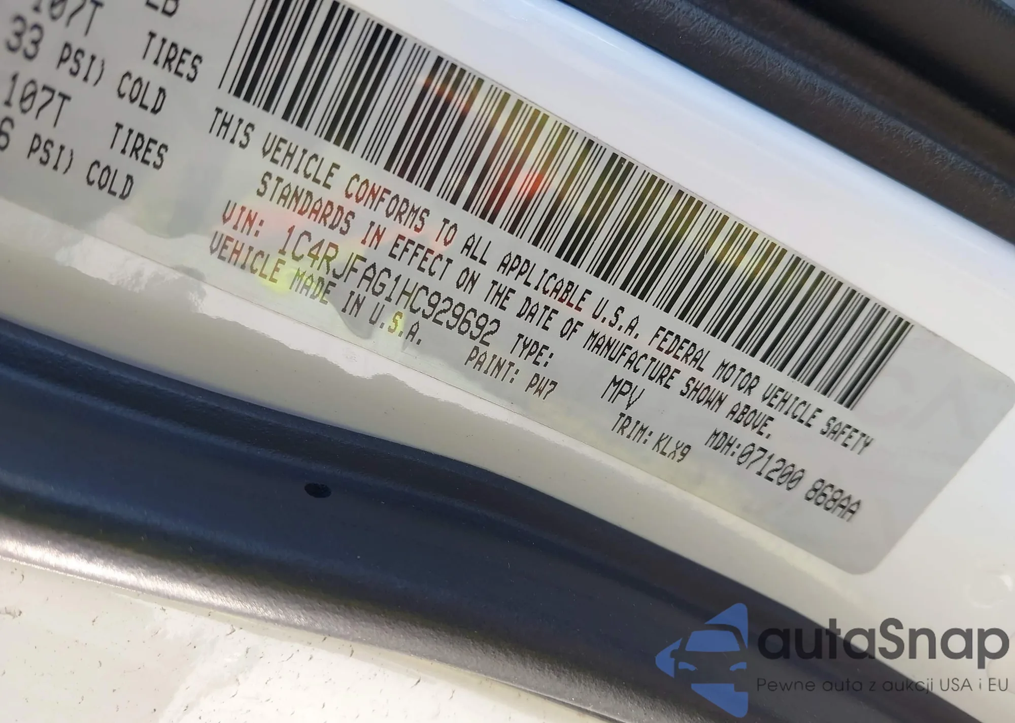 VIN: 1C4RJFAG1HC929692