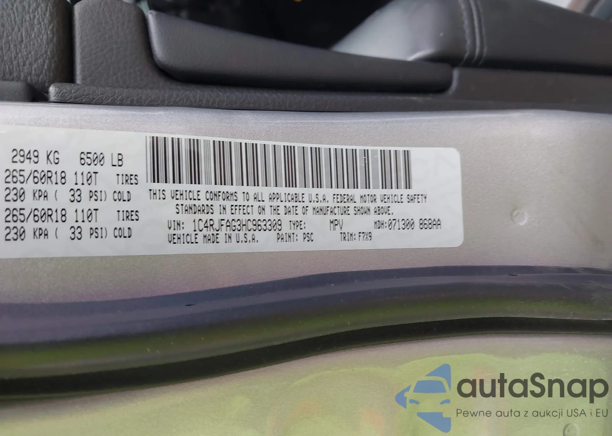 VIN: 1C4RJFAG3HC963309
