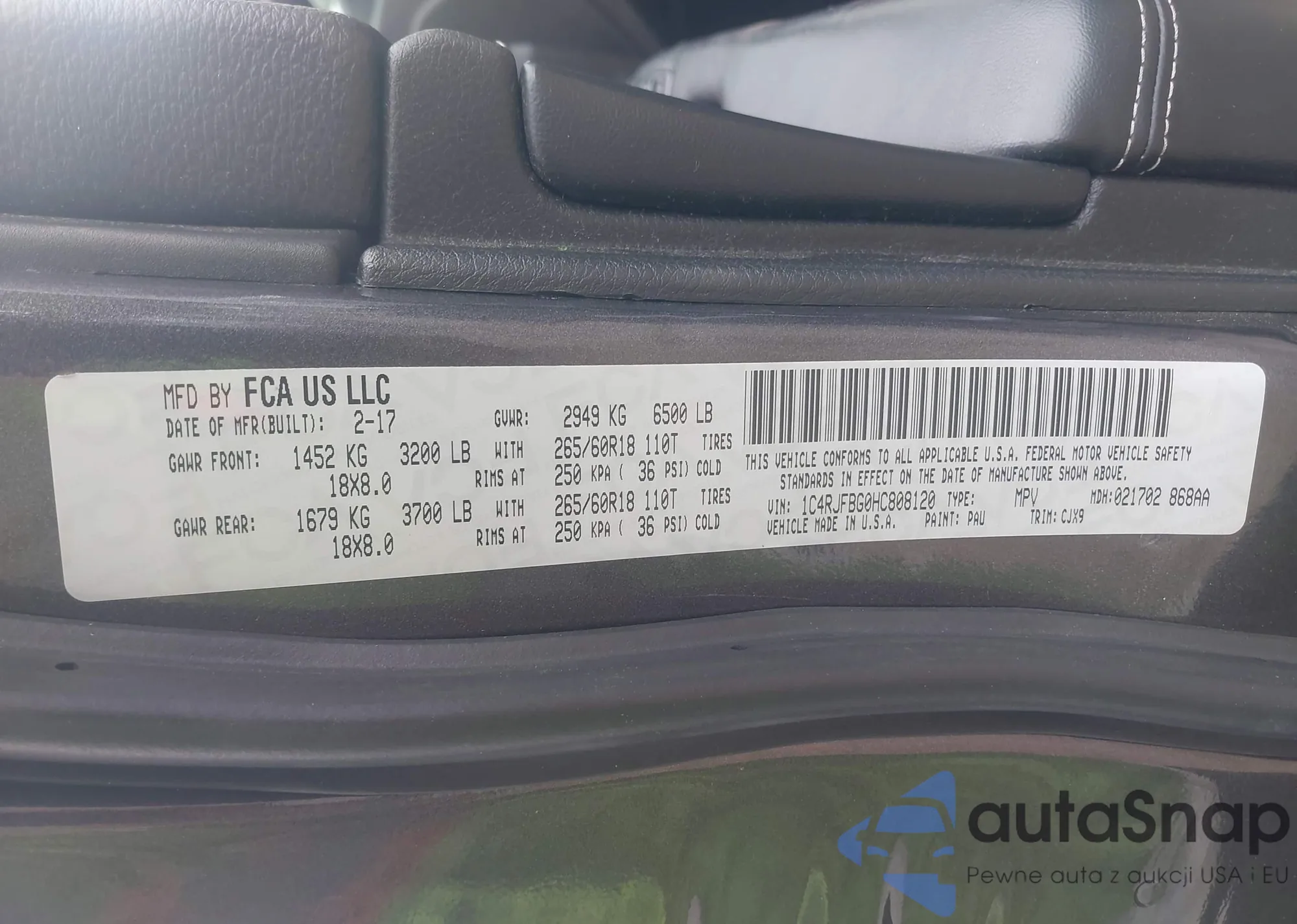 VIN: 1C4RJFBG0HC808120