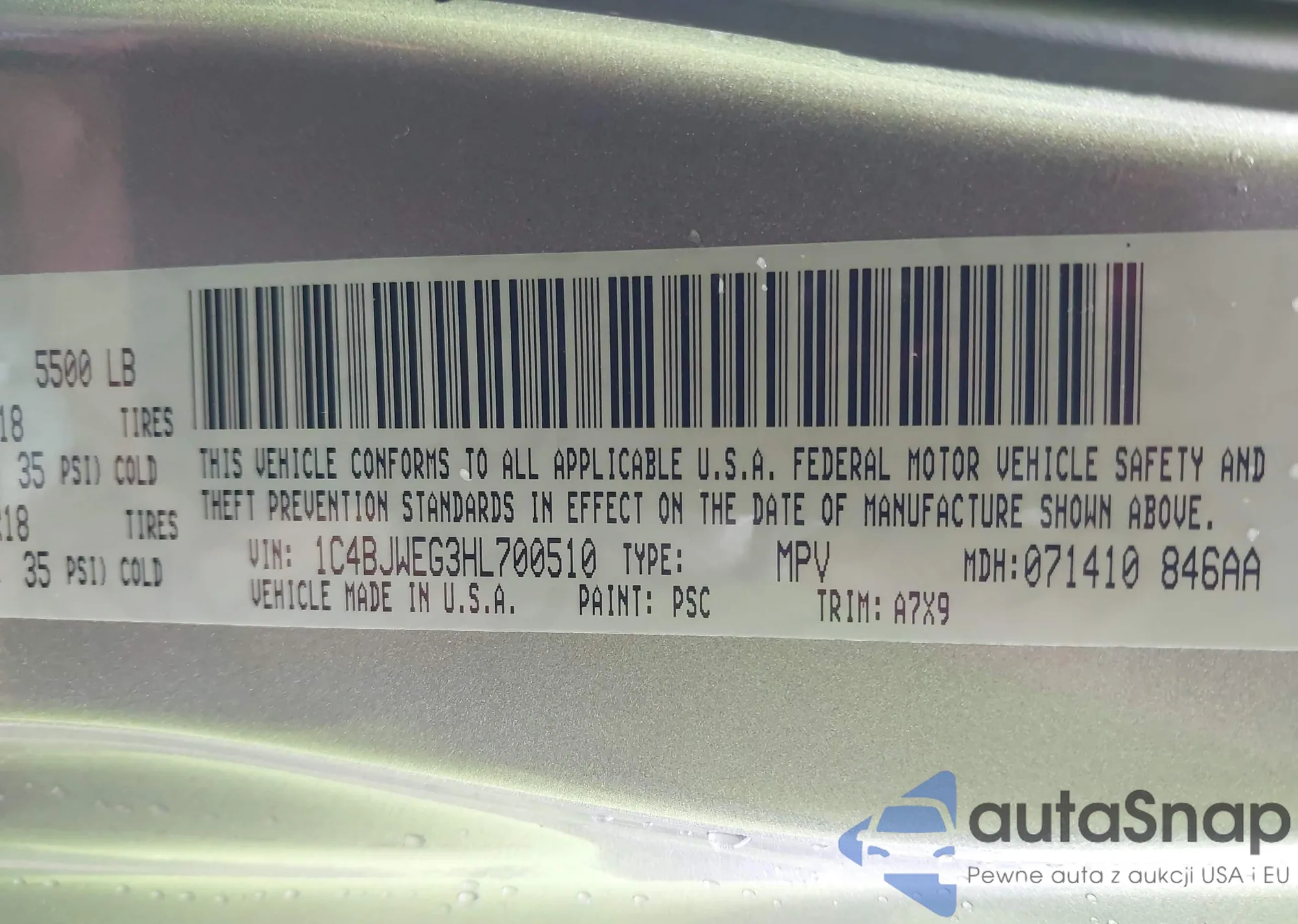 VIN: 1C4BJWEG3HL700510
