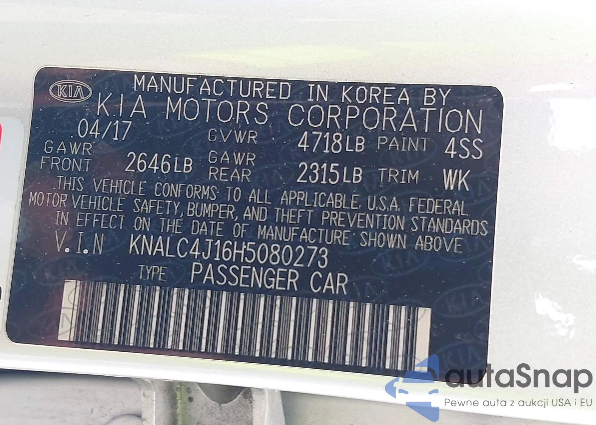 VIN: KNALC4J16H5080273